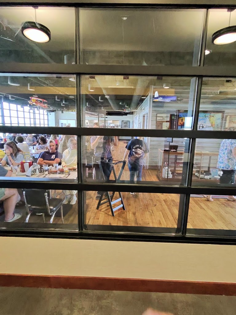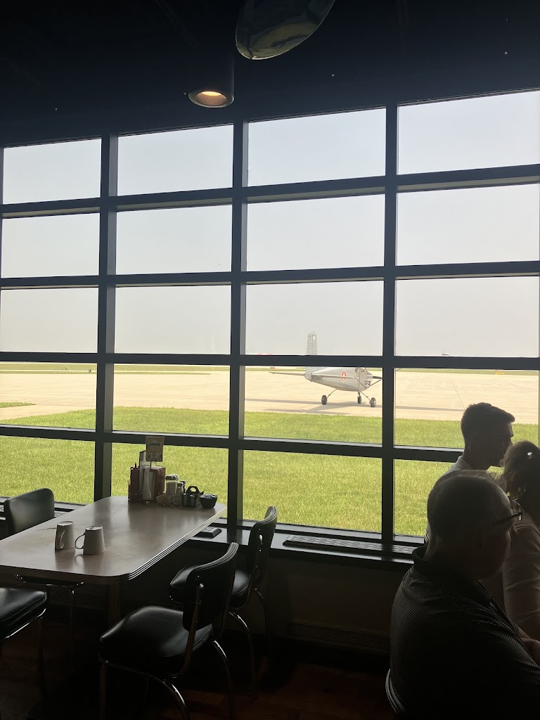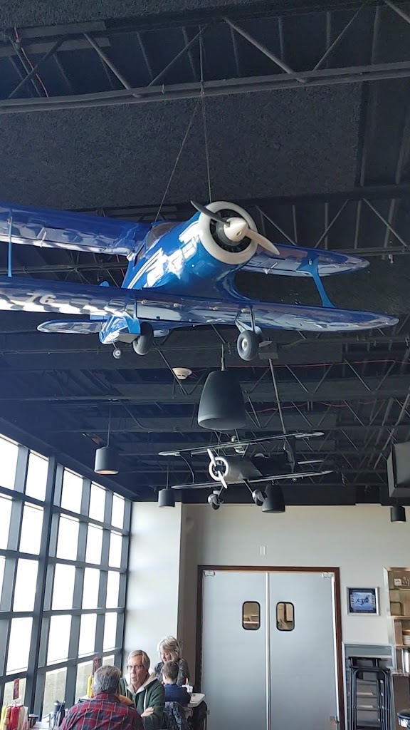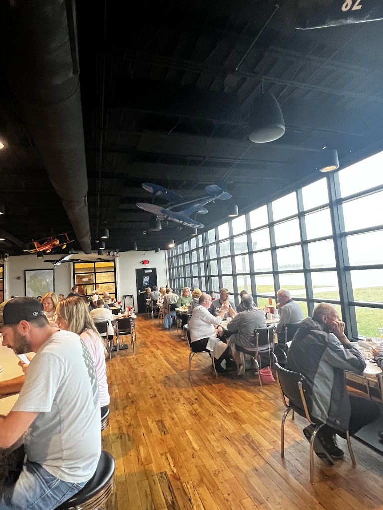 This was not a good experience. For having to wait 20 minutes to sit along with the elevated prices this was not worth the trip. Biscuits and gravy were absolutely dreadful, runny clear gravy along with biscuits that were almost impossible to cut with a fork was ridiculous. Dennys has a better eggs bendict while costing 40% less. We ordered a kids French toast which came with the syrup already on the French toast! Who does this??? Service wasn’t great either, had to wait a while on refills along with the bill and payment. This place is so overhyped but you can go down the road to Sophia’s in Beloit and have a far superior and cheaper breakfast. I’ll give 5 stars for atmosphere at least because of the view of the runway.