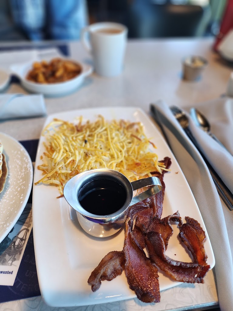 The restaurant is cold. It’s a race to eat before your food is cold. Had a Bessie’s stack. The food tasted okay but there was no brown to the hash browns, making the dish a bit soupy. Price is about average. Service great. Adjust the AC and actually brown the hash browns and it can be great.