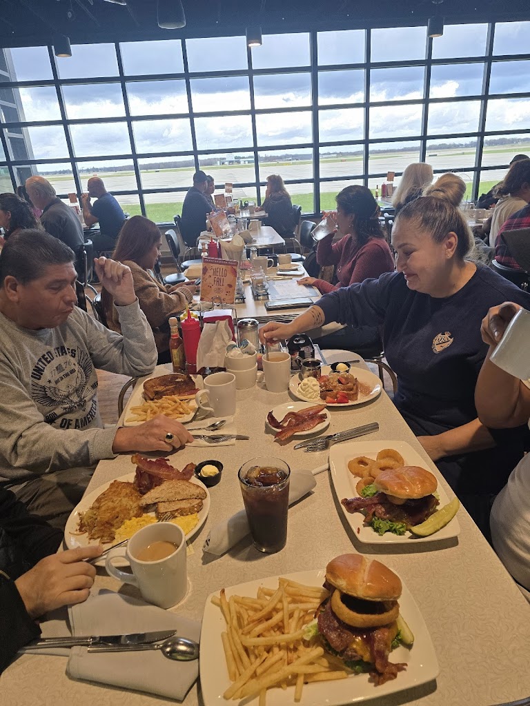 Loved it! This was my first time going and I was so impressed. Our waitress was so polite and helpful. We had the bisquits and gravy, pancakes, hashbrowns, bacon and doughnuts and it was all so delicious. Great view while dining just watching the planes take off and land. I will for sure be going back.