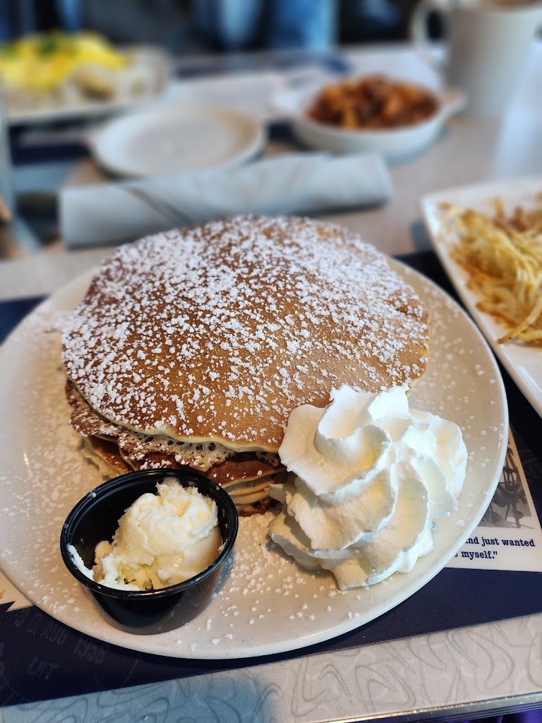 This place was awesome! Little bit of a wait, but it's worth waiting for a spot. Had chocolate chip pancakes, were delicious! Being able to see the planes taking off and landing is so fun and makes the experience all that much better.