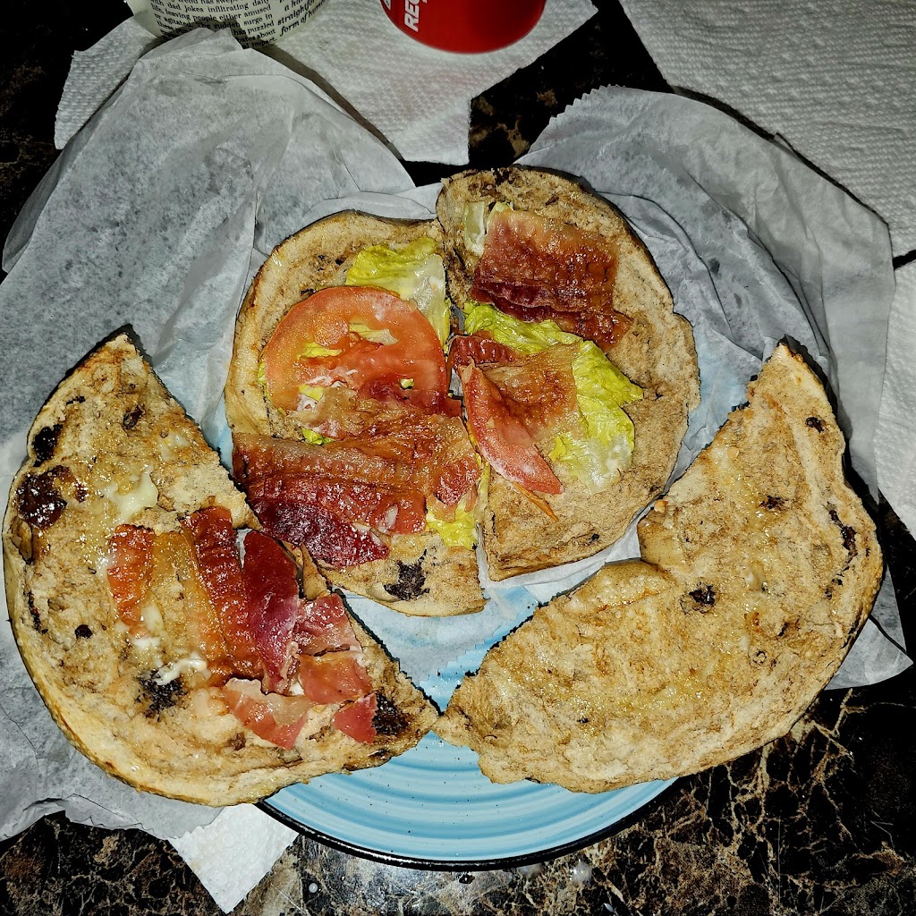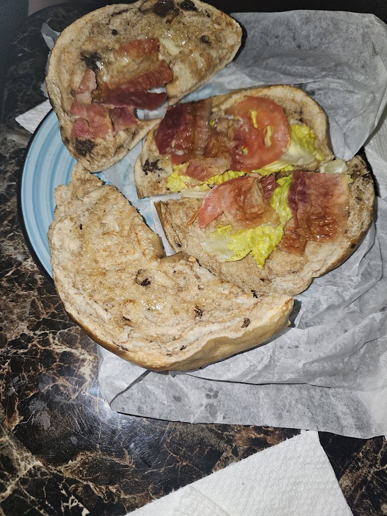 So my wife and I decided to give them a try. The bagels I tried back in the day were cinnamon raisin, tomato basil, rye, and garlic herb they were very good then. Especially the cinnamon raisin bagel and making it into a BLT; oh what a memory! This is what I got very little beacon, two pieces of lettuce, and a little piece of tomato, and no mayonnaise, which I asked for mayonnaise. Not at all what I remember, which if I had received this sandwich, then I would not have gone back. I really do hope they improve on an Amazing Bagel shop! Sorry, I'm very disappointed 😞....... And that is all I have to say about that...