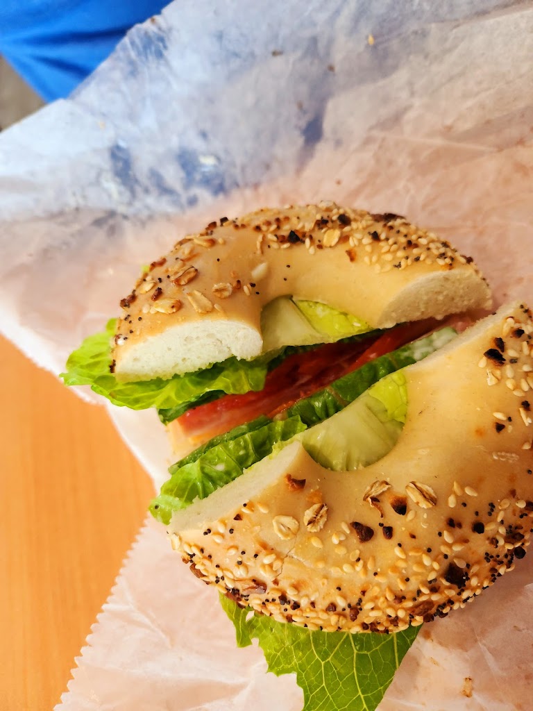 If i could give it zero stars, i would. This place was dirty when walking in. The girl at the counter was rude. I ordered two sandwiches and a bagel with cream cheese. The sandwiches were in garlic bagels which tasted like saw dust. The hummus on one sandwich had zero flavor. The bagel was chocolate chip with strawberry cream cheese. Awful. My daughter wouldn’t eat it. The cream cheese was radioactive pink color. It costed almost $20 and took almost 20 minutes for my order to come. Awful experience. Awful food. Don’t waste your time.