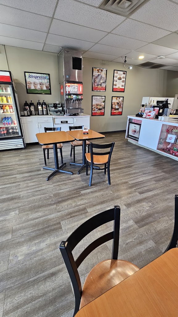 We had a coupon buy one get one free deil bagel sandwich. Both sandwiches where amazing! Their muffins are very good. We had the cherry cheese cake and shared it. They have great selection of bagels and muffins. The service was great!