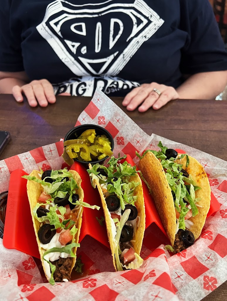 Good nachos,tacos,homade pizza and tacos. Clean nice staff