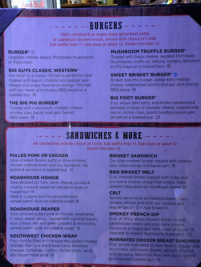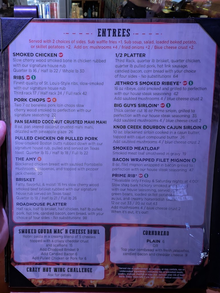 The food every time I've been here has been amazing. The smoked meats never disappoint. I truly love their Roadhouse Reaper sandwich. If you like good heat with a lot of flavor, give it a try. It's a bit of a drive for us, but well worth it.