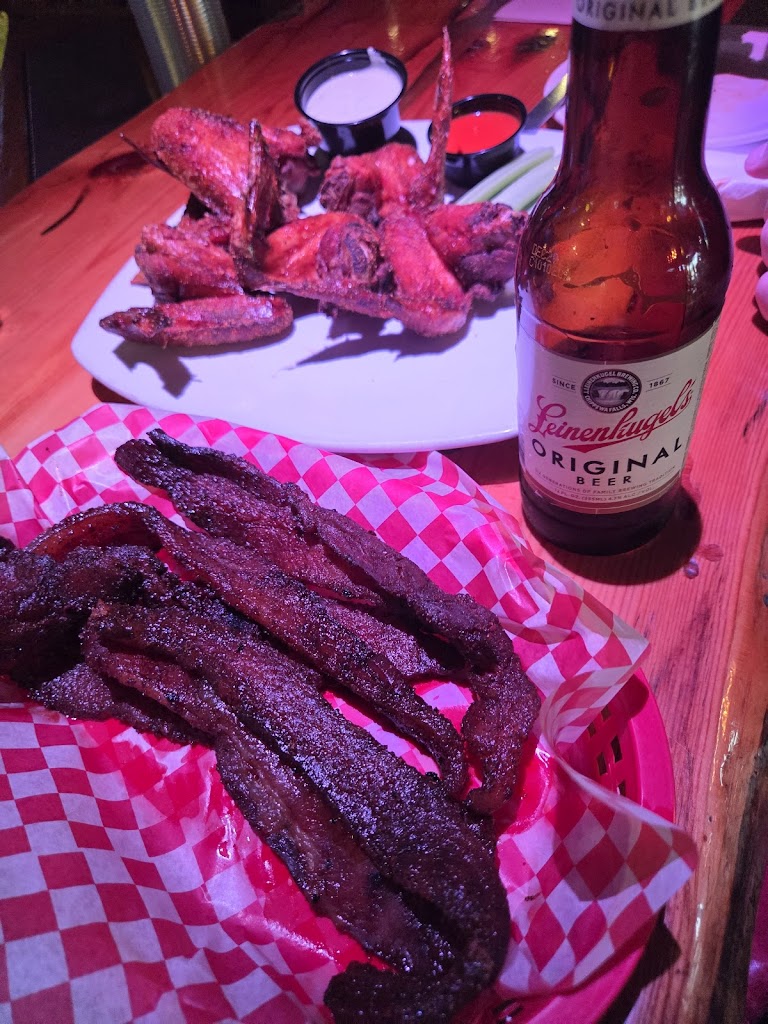 Undercooked wings & burnt bacon. Waitress was advised and made no effort to resolve the issue.