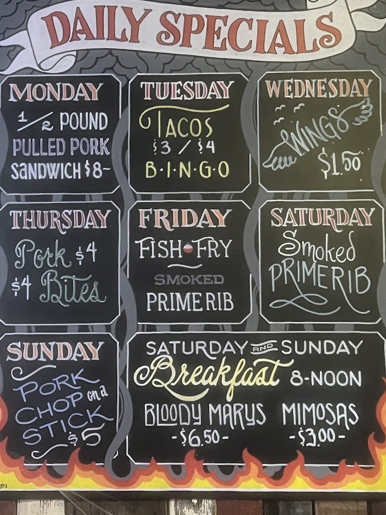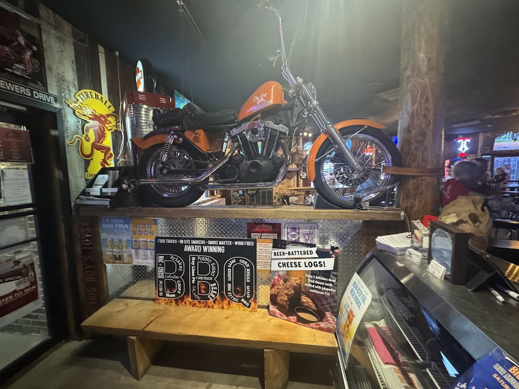 The food and drinks are delicious 😋 I had my spotted cow I had chicken last night,there macaroni and cheese is so good 👍 creamy macaroni and cheese with amazing flavor. Our friends had ribs,I had chicken and my husband had a quarter chicken, mine was shredded, there bbq sauces are delicious as well. They just have lots of good flavor, hard to describe. It was loud inside with the meat raffle going on,was hard to hear our friends talking. We have eaten here for the 3rd time, we getting something new each time. Bands were playing here as well. We were there for a few hours.