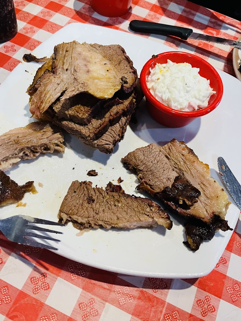 On our way back from vacation, we were really in the mood for some classic BBQ, so we did a little research and found a spot with pretty good reviews. The vibes seemed promising when we walked in, but that’s where the positives die. We were seated at a dirty booth that we had to clean ourselves, and there were flies landing on us. We ordered a pound of brisket along with mac and coleslaw, and while the food arrived quickly, it looked pretty unappetizing. The brisket was DRY/TOUGH and chewy, with thick hard chunks of fat, while the mac was served cold. Both slaws were sad, especially the classic one, which had an odd fishy taste. It’s a shame because we really wanted to enjoy some good BBQ, but this place just didn’t deliver. Our service was okay but nothing that could have saved the experience.