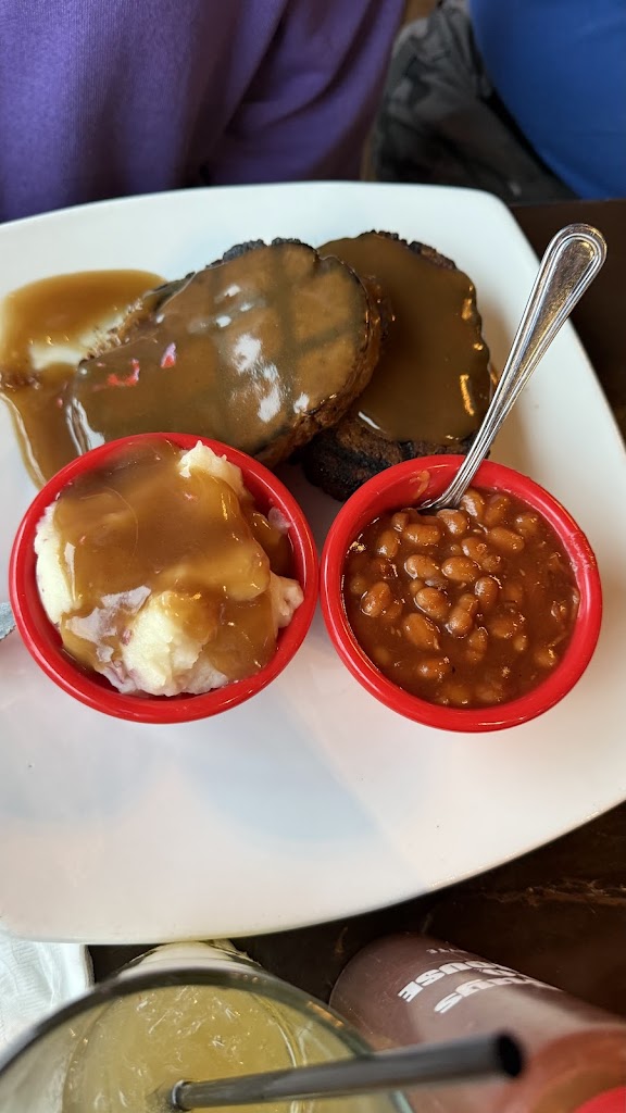 Great BBQ restaurant with a Texas Roadhouse feel. Food was great. Order the cornbread and the Mac n cheese as sides to share. Tonight it was pulled pork or Chicken sandwich with fries for $8 - look for the daily specials or go with the main menu which has some great bbq classics.