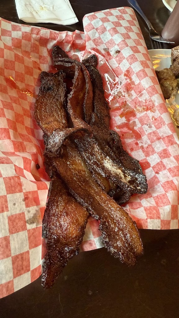 Sorrow guys, my wife saw a review for you guys on TV and said we should try it. Service was slow, we had to get our own water and one of use in the group had too ask the manager to send a waiter over. Brisket was fair, sides of beans and Mac and cheese was good. Bacon was good My order for the ribeye was ordered medium rare and came out well done ( would have sent it back but the service was so slow I didn’t want to wait ) kids meals were good. Had a group of nine and got charged for a gratuity plus tip plus up charge for using a credit card. $ 74.40 for two waters, over done steak and side order basket of bacon.