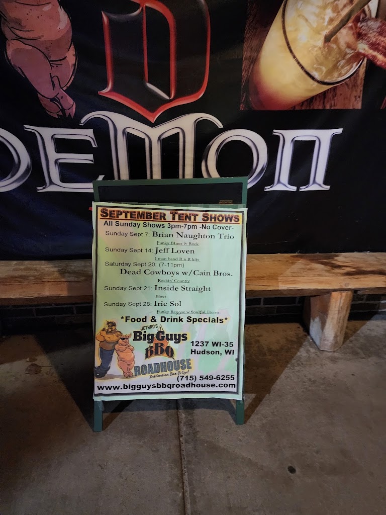 Big Guy's BBQ Roadhouse in Hudson, WI has been a local favorite since 2015, proudly serving Hudson, River Falls, Baldwin, New Richmond, and surrounding areas. We offer a wide range of experiences including wine, craft beer, happy hour, daily specials, catering, live music, ladies night, and more. We are currently open for dine-in with limited seating, as well as curbside pick-up, delivery, and takeout. Our kitchen hours are Monday through Thursday from 11 AM to 10 PM, Friday from 11 AM to 11 PM, Saturday from 8 AM to 11 PM, and Sunday from 8 AM to 10 PM. For your next meal, visit Big Guy's BBQ Roadhouse.