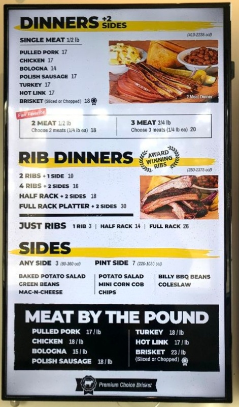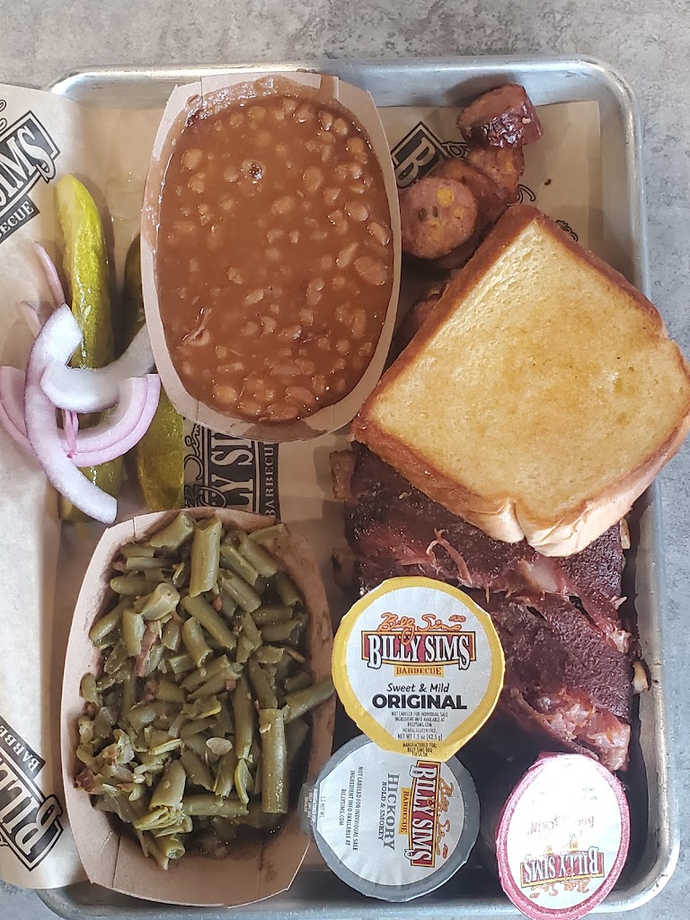 I've been wanting to try Billy Sims BBQ for some time. It did not disappoint! Huge portions. My husband and I each got a 3 meat dinner, along with 2 racks of ribs so we'd be set for the weekend. I could not finish my 3 meat dinner. I got the chicken, pulled pork, and chopped brisket. All were great. He got the smoked polish sausage in addition to 2 other meats. We were joking on the way home, I asked if I could try a little piece of the sausage and he said it depended on how much he got, I may only be offered a smell! I was lucky to get a piece and wow, it was delicious! Will be definitely be back!!