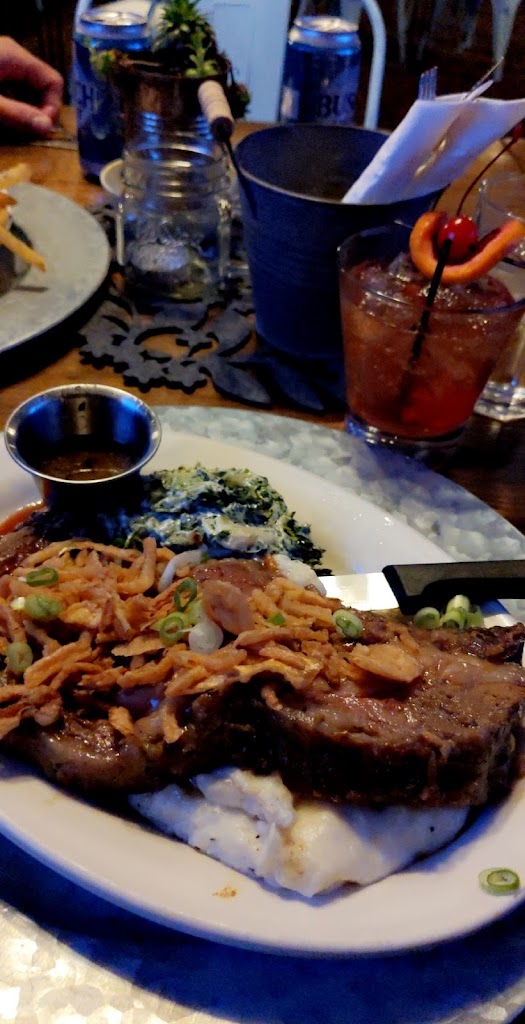 We went on a Friday evening with reservations and the restaurant was not full, but our service was slow. We were not checked down, but our server was very nice. I’m not sure if it’s a staffing issue or what but we would’ve stayed and gotten a few more drinks, but we just didn’t have a server to order from. I ordered the fried shrimp on the fish fry menu and they were very good. My husband got a steak and he said it was under seasoned or under salted. Overall, the restaurant is very cute. We just were disappointed with the service especially with the price of food and drinks here.