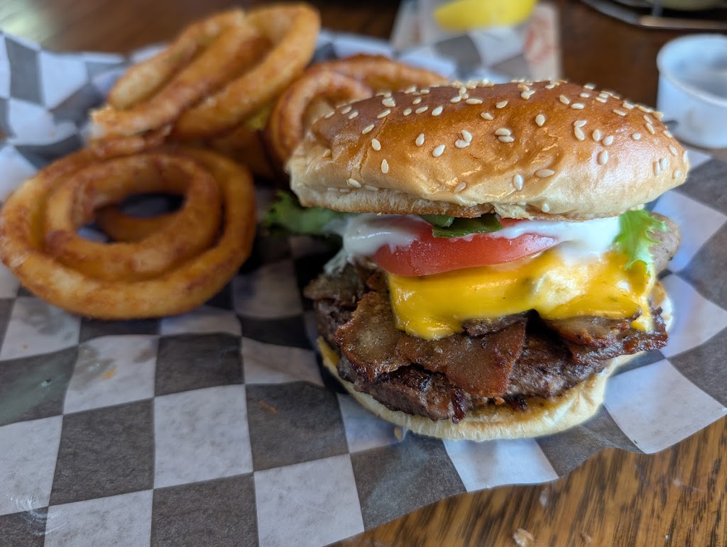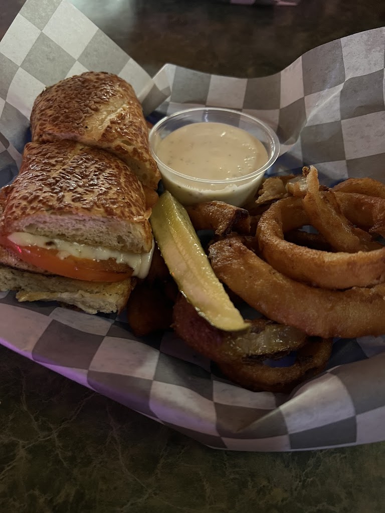 If you're looking for a quiet place on a Sunday to eat, this is your place! We came around 11:30 and got a seat right away. The waitress was friendly and took care of us quickly. I ordered "The One That Got Away" burger with gyro meat on top and tzatziki sauce. It was really good! Their Onion rings are big and crispy and also really good!. My mother-in-law got a BLT and said it was good and their fries were really good. I highly recommend!