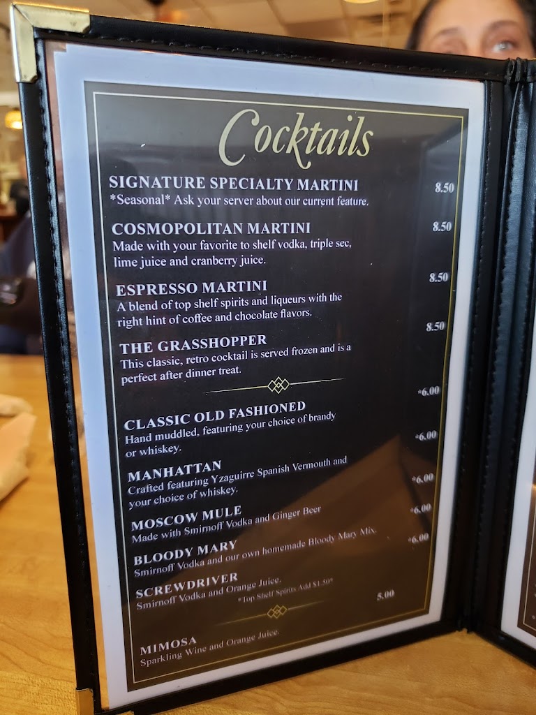 If you like burgers try their bistro burger or their patty melt! Perfection! Melty cheese, just right!. Check menu, for other delicious entrees.