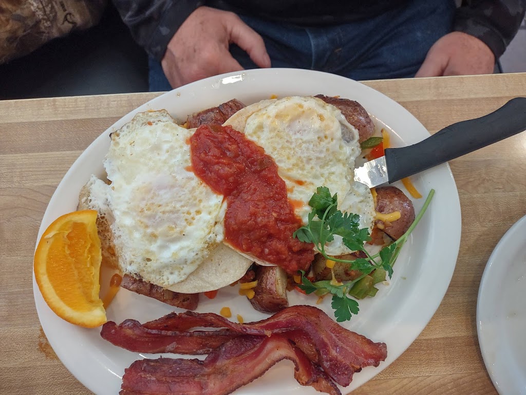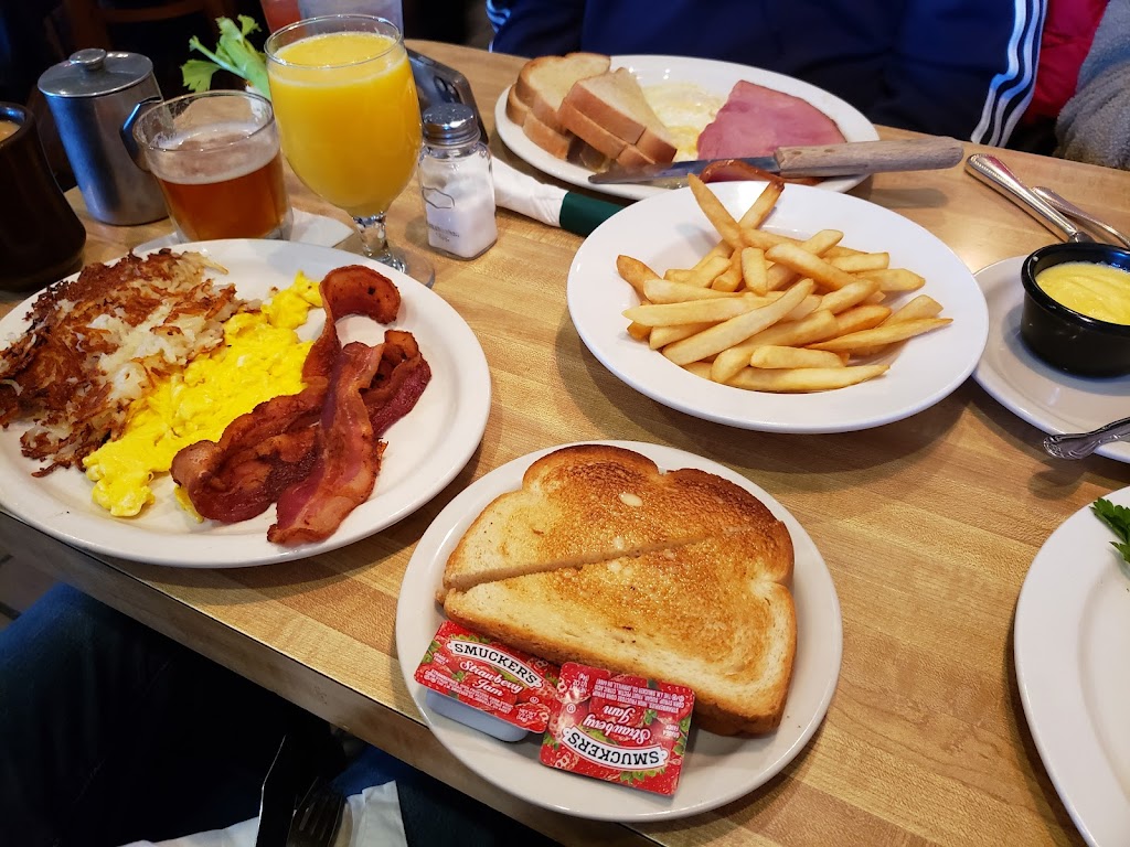 This popular breakfast spot has good home cooking served fast and hot. Service is quick and friendly, and the owner can be seen checking on customers and helping out. Booths, tables and a bar offer a nice variety of seating options. Our breakfast was very good and the portions were perfect.