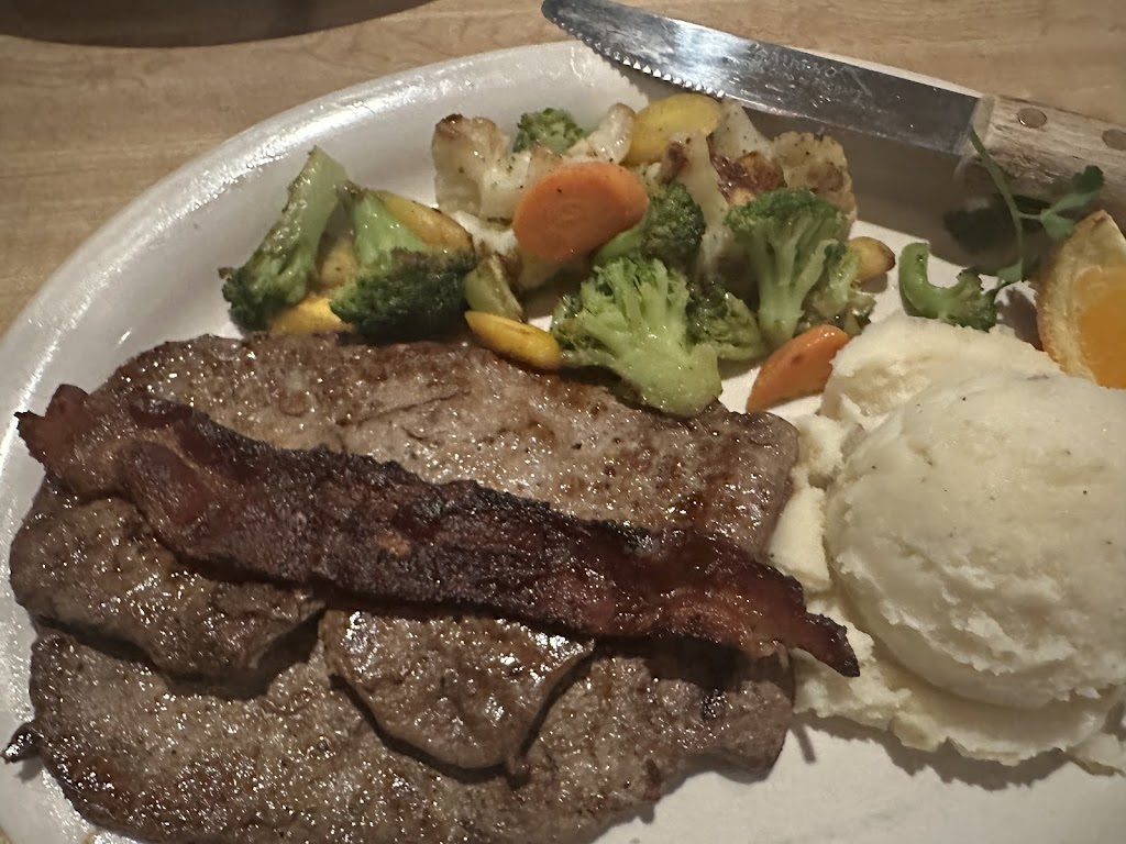 Atmosphere was solid, a lady playing the piano was cool. The mix drinks they make very well, had a really good Old-fashioned. I ordered the French onion soup, it was very bland, I love French onion soup, and this was just meh at best. Regretted not getting a salad because that looked really good. Ordered the beef tournedos filet cooked perfectly, plating looked ok. However, the seasoning was unusual, was glazed in a sweet sauce. Not terrible, however not something I would ever order. Also, it came with three large onion rings and potato would’ve appreciated a vegetable instead of the onion rings. I would go back. I just would not order anything I ordered again.