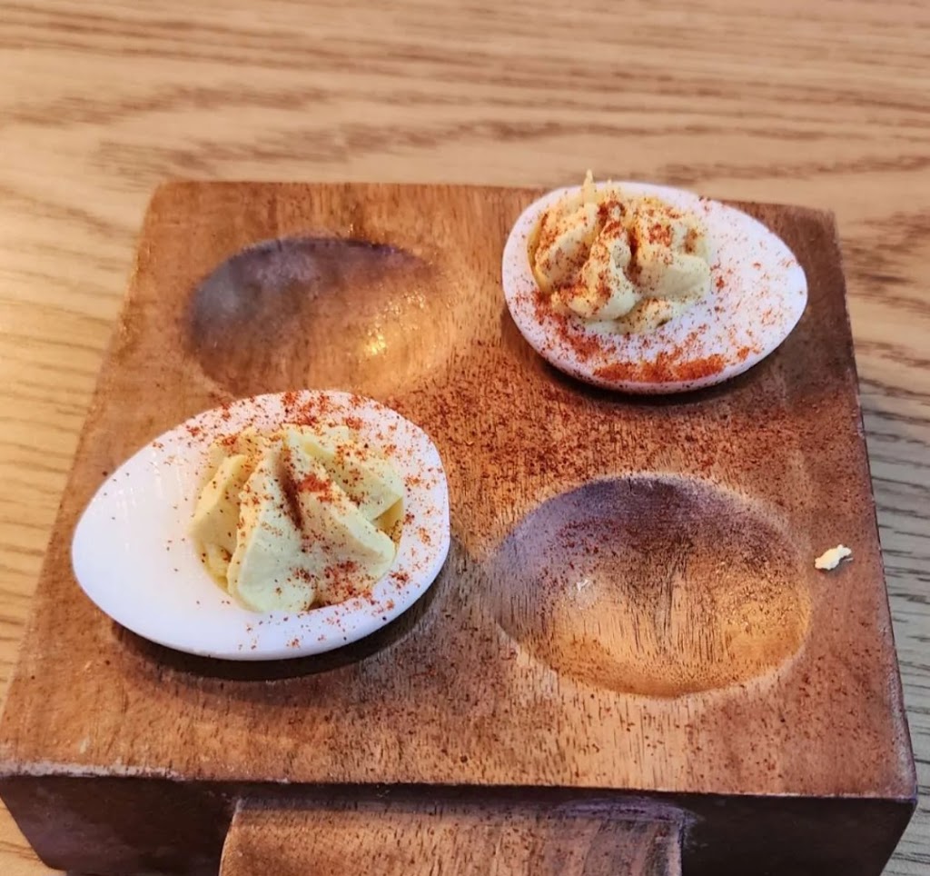 Our dining experience was exceptional. The smoked ribs and baked beans were outstanding, and the smoked mac and cheese was a delight. The ambiance was enhanced by the well-appointed interior design. Unfortunately, we were unable to sample the deviled eggs as they were unavailable. However, based on the superior quality of the other dishes, I surmise that the deviled eggs would have been equally impressive. We look forward to our next visit.