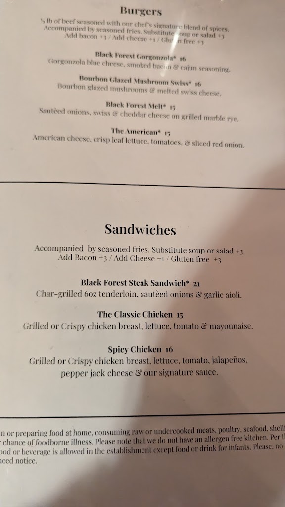 Outstanding. Some of the most outstanding hospitality we've experienced in the Northwoods. Black Forest Pub & Grille was a real treat tonight. From the engaging conversation with Collin and Mike at the historic Bar to the vivacious charm of our server Kat - our food and dining experience far surpassed our expectations. My seared Salmon was perfect and the handmade fettuccine Alfredo with shrimp was buttery and creamy. Make the drive as soon as you can, you'll be glad you did. Ask for Mike & Kat to enjoy their enthusiasm and Northwoods hospitality.