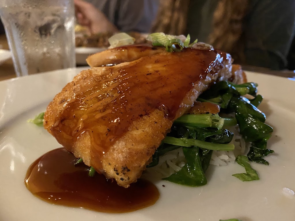Bartender was accommodating to our questions, dining room service could have been better, my salmon dinner was wonderful! However my husband's meal that had a portabella mushroom added was pulled by him as it was very soggy/rubbery. He was not pleased.