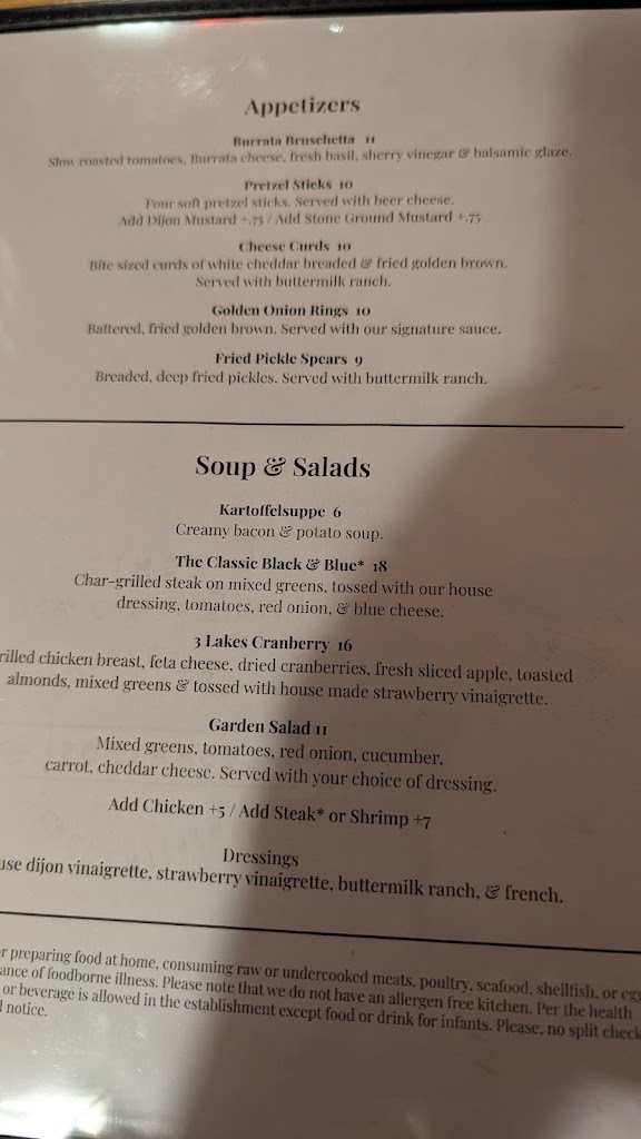 Excellent food and service, you will not be disappointed! We were so happy to see a large variety of gluten free menu options and are looking forward to returning. We are so grateful this restaurant is here in Three Lakes!