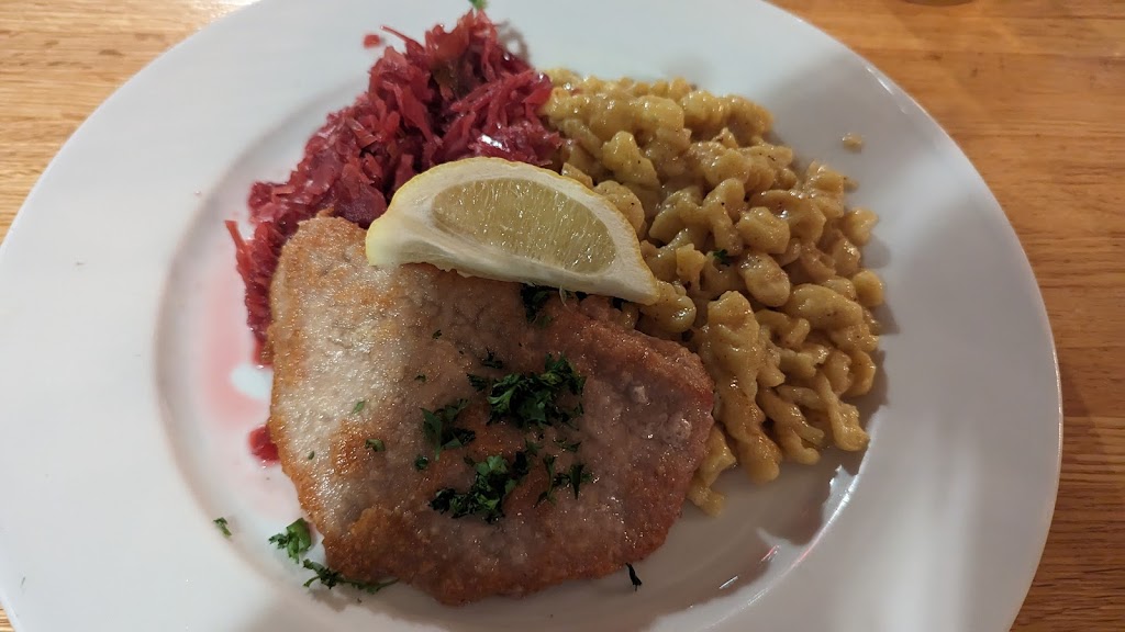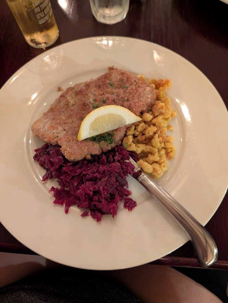 Salad that accompanied meal was very small portion wise. Had the winzzerfanne and it was not our expectation. It lacked flavor and presentation. The spaetzle was combined together and served like a plate of Mac and cheese or goulash. Not typical of the way that is usually prepared. It did not taste like it was made with homemade spaetzle or fresh ingredients. The staff was very nice and service prompt.