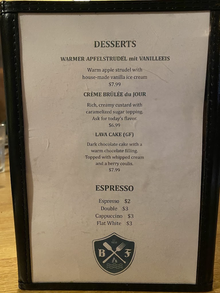 Took my family there recently. Expected German fare - very disappointed. The food we did order on the VERY limited menu was decent. But most likely frozen cooked. Very nice atmosphere and great service. To the nice staff: Stick with North Woods grub and you guys will do just fine... ps. My wife and I were both stationed in Germany three times. Just saying. Happy Holidays.
