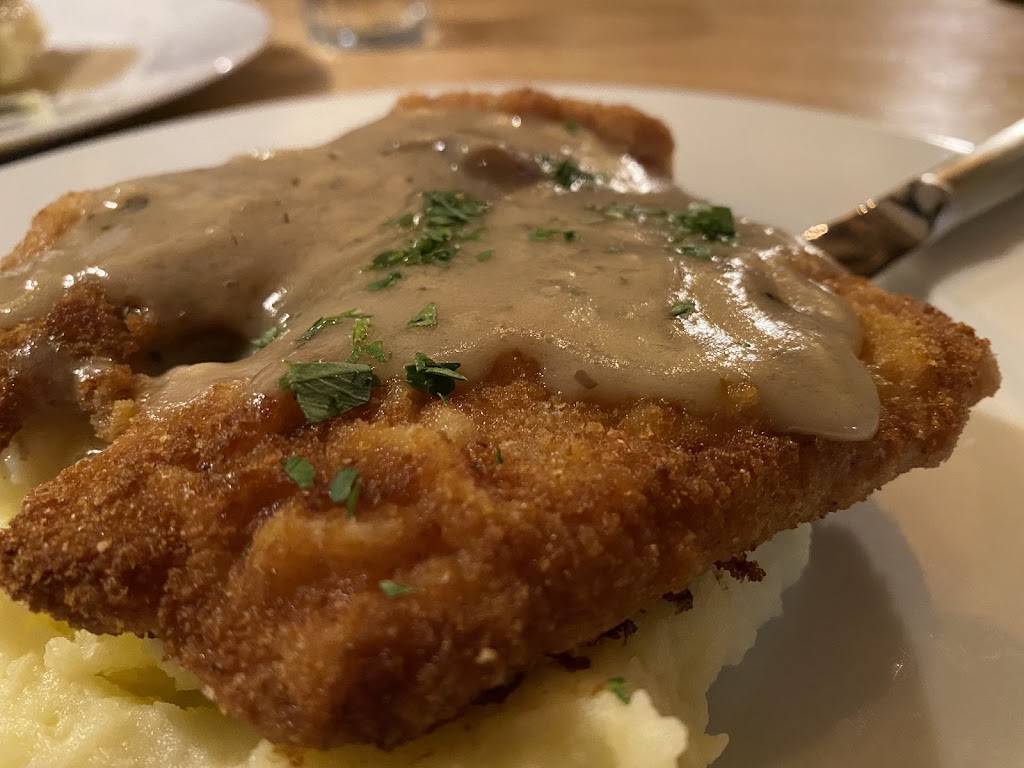 Schnitzel and special of the evening was quite delicious. Good wine selection, old German world and supper club atmosphere with dark timbers and white panels, large dining area, wait staff and owner Shena were wonderful. Definitely recommended this place for an authentic German experience.