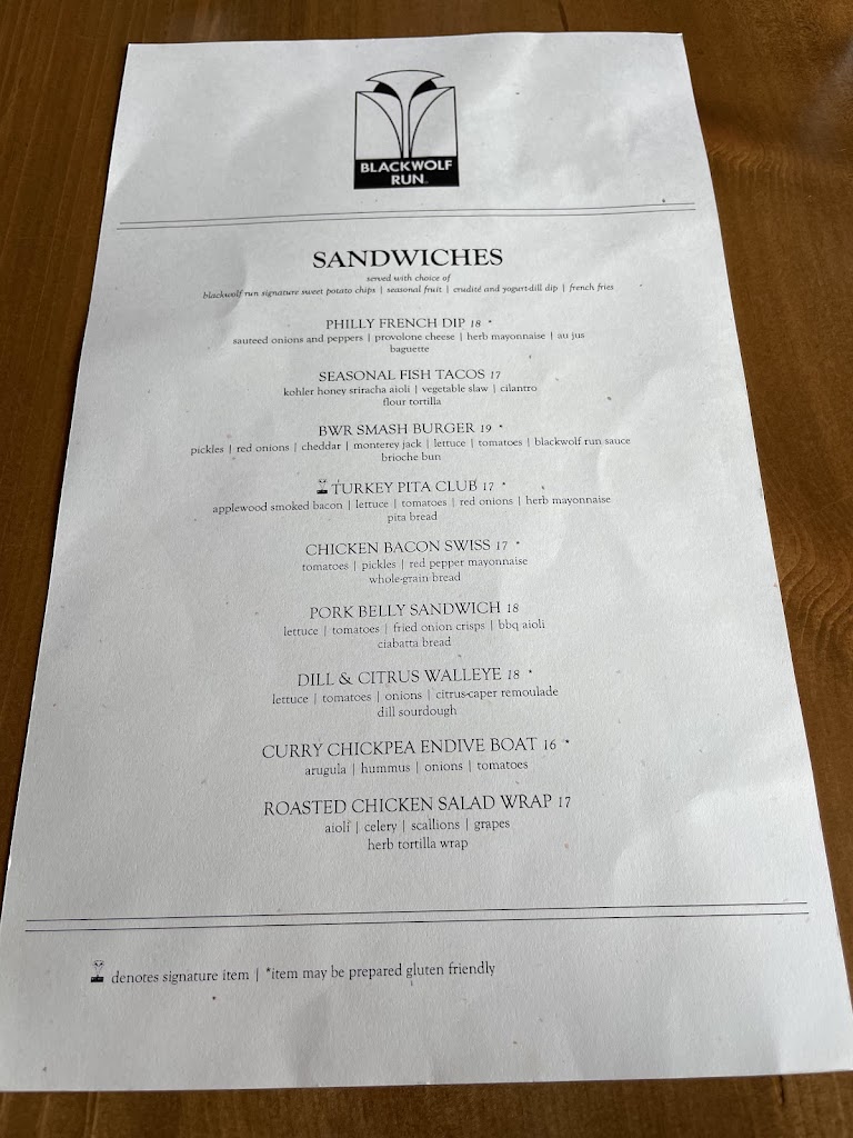 Excellent sandwich choices for lunch. Great view of the golf course and river. Attentive staff.