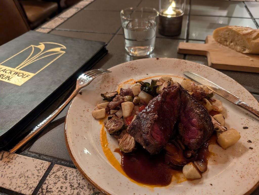 Everything was perfect. The Elk Loin was superb. Corn chowder amazing. Wisconsin cheese bread fantastic. Creme brulee dessert to die for. Great friendly staff. 5 stars all the way.
