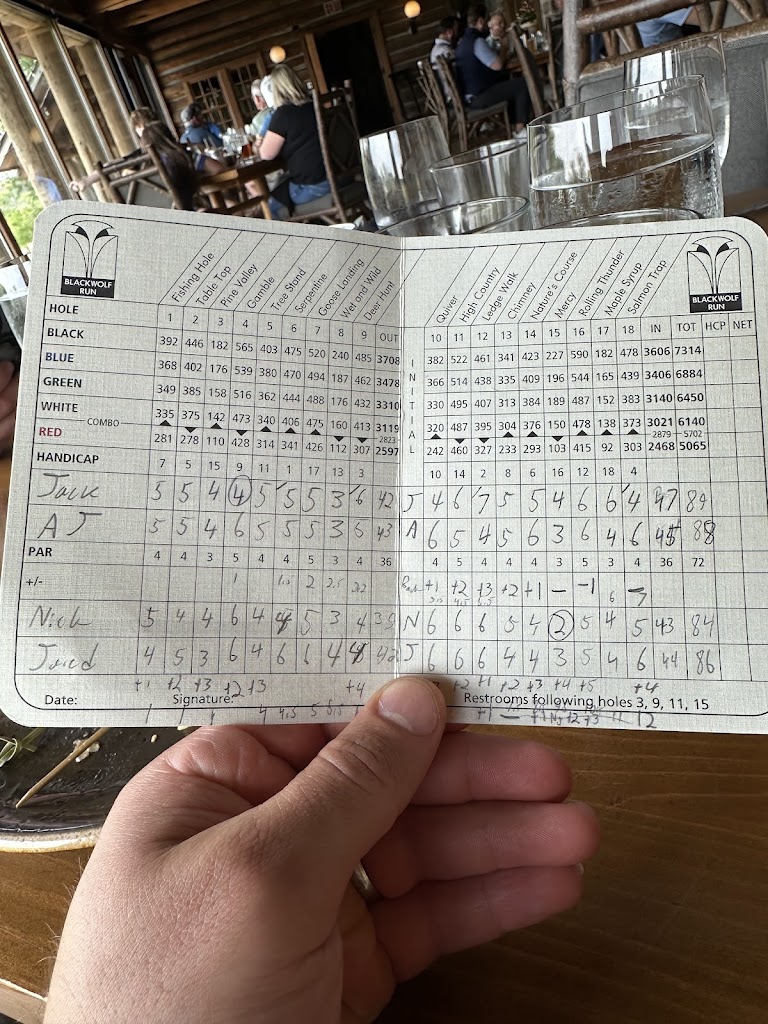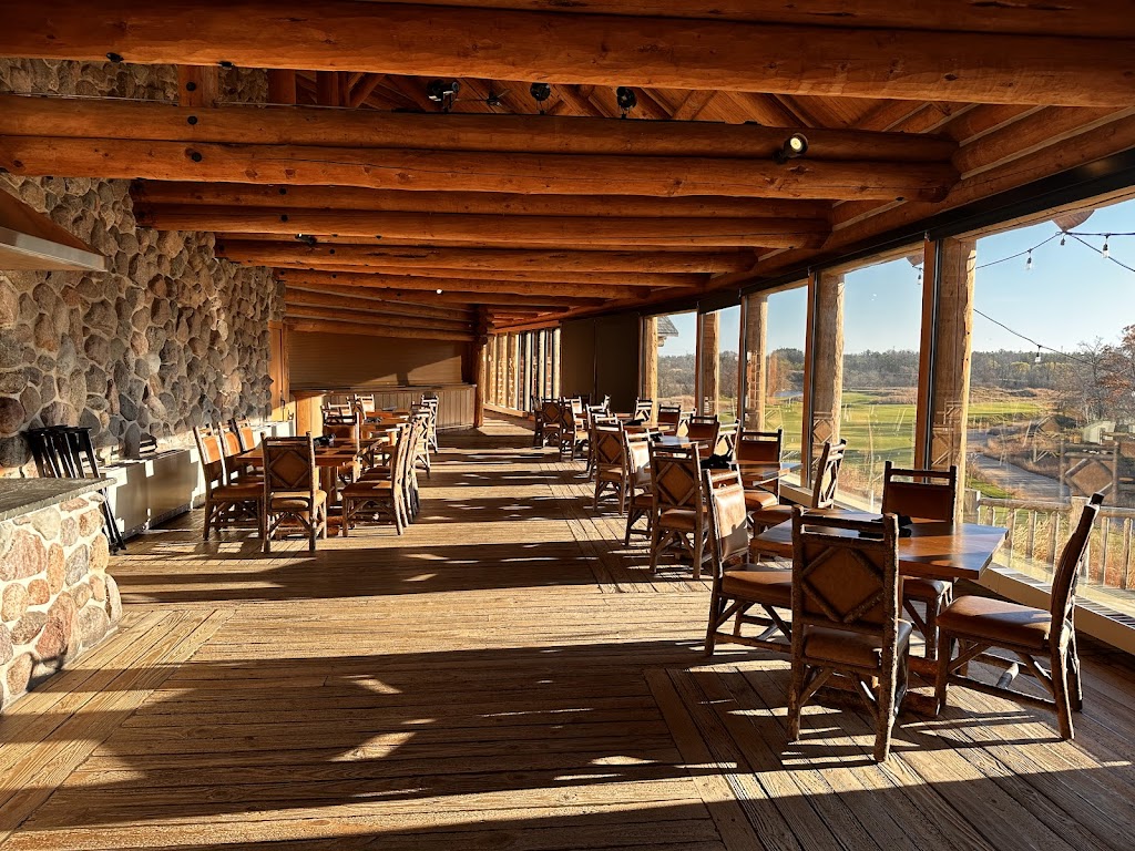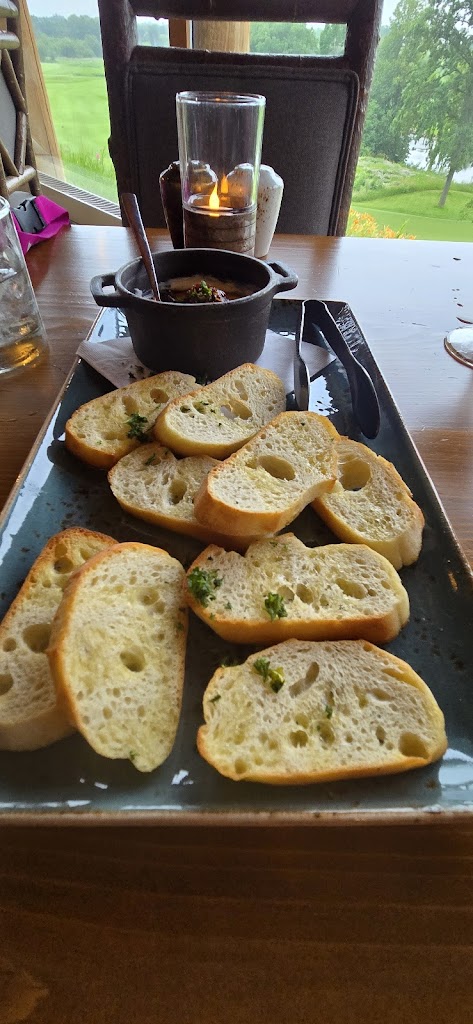 Great views of the golf course from this wooden lodge restaurant. They are understaffed which happens now so be patient if you need to wait. The waitress was amazing and attentive. The soup of the day was superb and my food was phenomenal. The four of us had a great time and enjoyed this place.