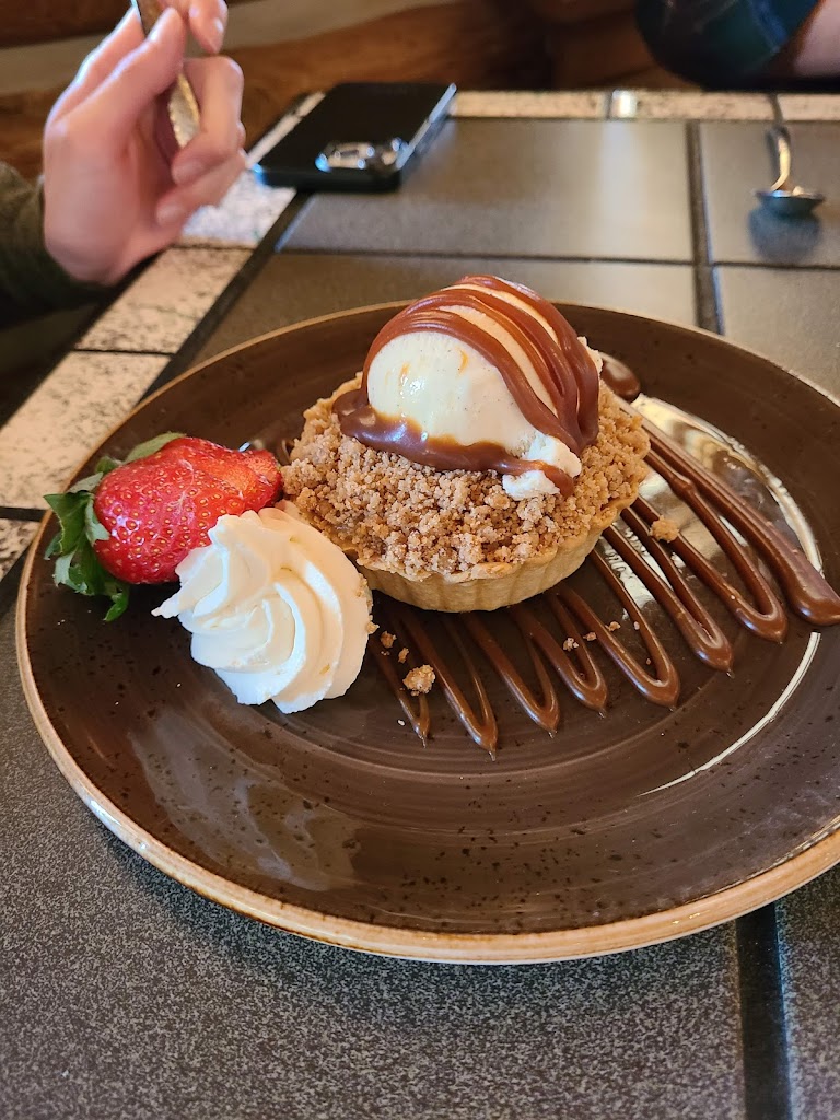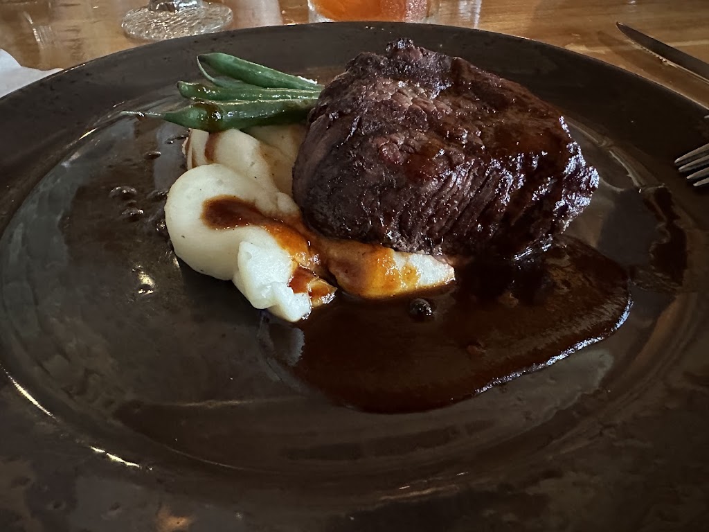 What a great restaurant! The log cabin structure with massive stone fireplace and twinkling lights outside was spectacular. The food was all top notch, the honey butter for the bread, a beet salad, and creme brûlée desert were my favorites! (Steak was fabulous too!) Jackie was our server and she was so kind to give us recommendations that were all spot on. We loved her!