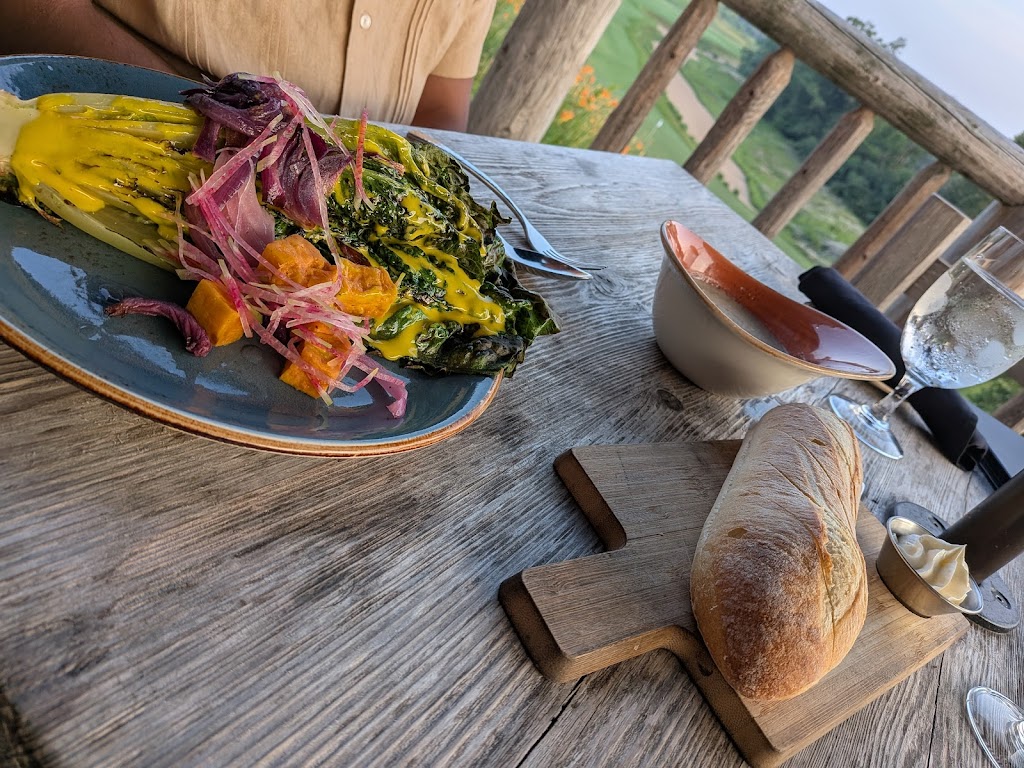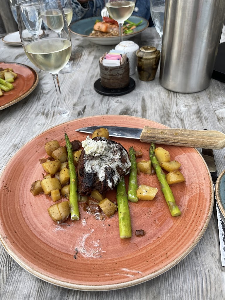 Delicious! So many great options, even for someone like me. Who does a keto diet. Also great on alcoholic drinks and wonderful wine. The scenery was so beautiful from the restaurant.