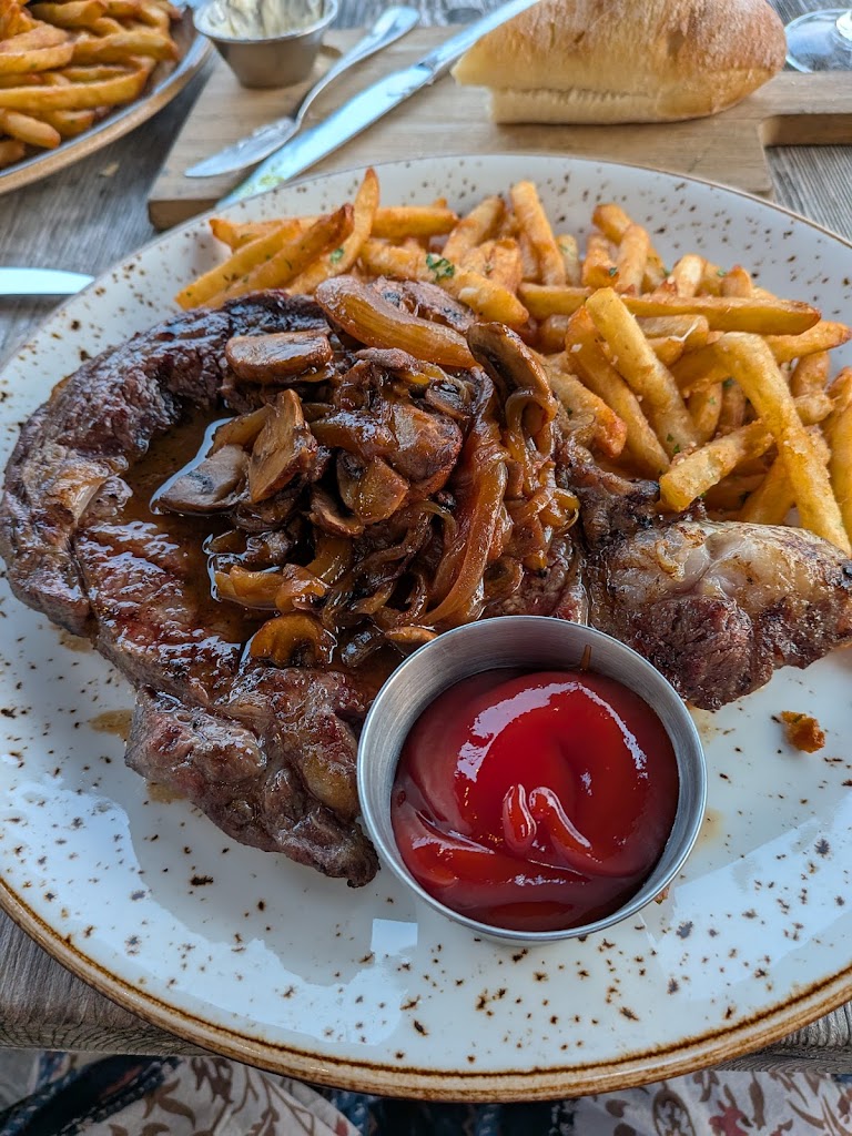 Great Golf course location, service is wonderful. Rib Eye average at best. Elk and Bison were better dishes.