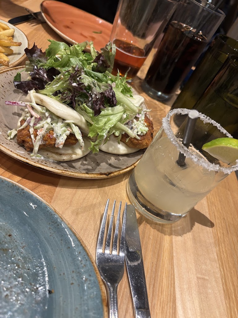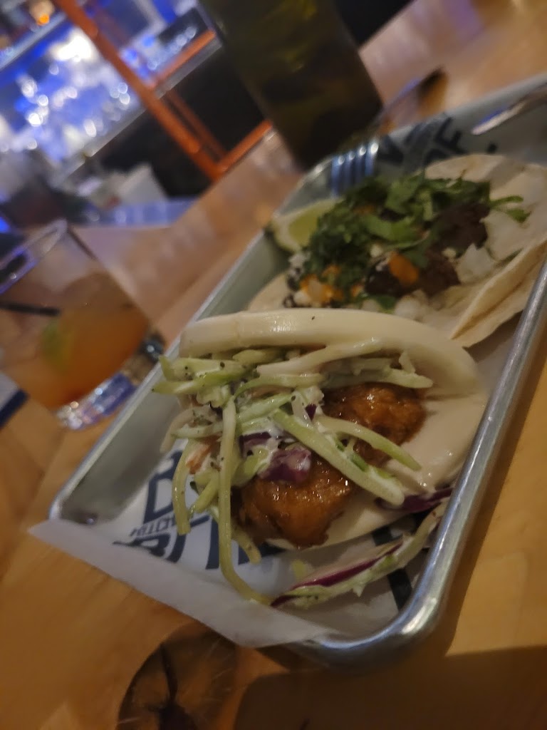 I came here for my anniversary dinner and we ordered the Shrimp Tacos. They were okay I just didn’t like the cabbage that was in the inside but everything else was good. The drinks were amazing. We ordered the blue bat margaritas
