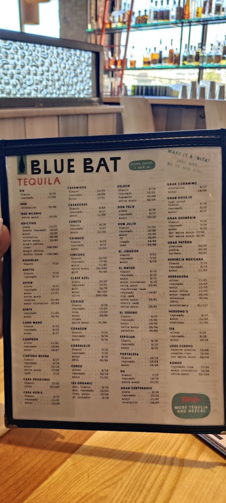 ALWAYS a great experience at Blue Bat! Food and tequlia were excellent as always and Megan took great care of us. Highly recommend!