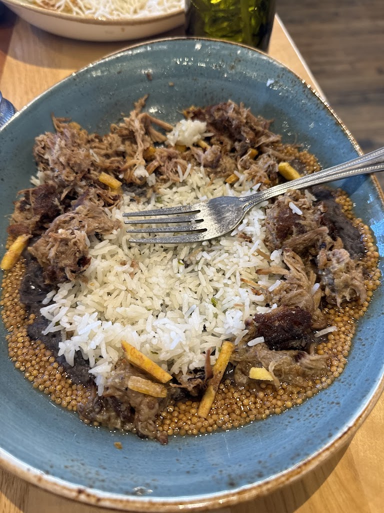 First time at this restaurant. I ordered guacamole and chips to share. Chips were fried and very greasy. I also ordered the Mojo Pork which had a terrible presentation and looked disgusting. I couldn’t even eat half of the meal.