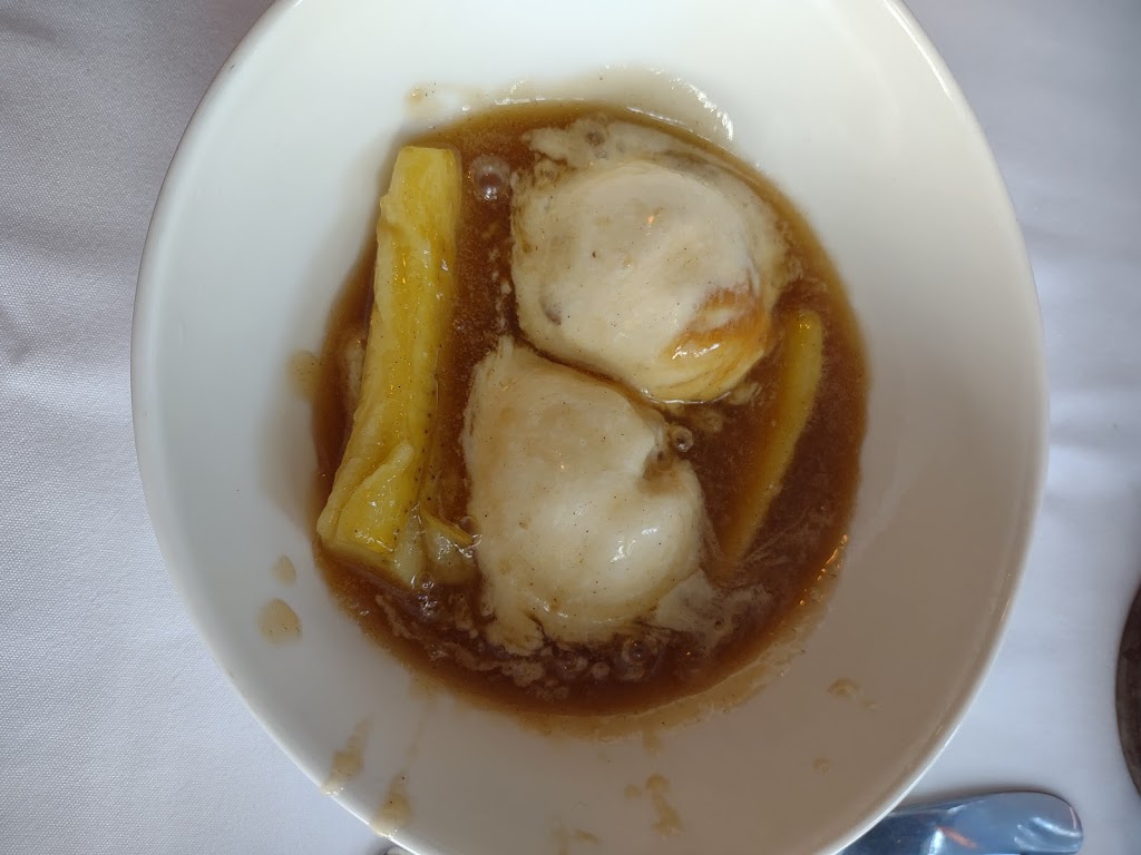 I was told this place was pricey (true) and to expect a long wait between courses, but that part was untrue for us as we were there at 5 pm on a Wednesday in late September. We had phenomenal service and excellent food. Our group enjoyed the gumbo, strawberry rhubarb (cold) soup, salad cart, duck etoufee, scallops and Cajun catfish. My Cajun Mule cocktail was also outstanding, as was the Bananas Foster dessert, prepared at your table along with a recitation of its New Orleans origins. The ambiance was charming from the tiny bar throughout the cozy restaurant and beautiful deck. The only thing that would be better would be bigger portions so I could have leftovers. Note:reservations are required and they don’t answer the phone after they start serving at 5 p.m. The bar is open at 4:30 however, and serves up well crafted cocktails with a New Orleans flare.