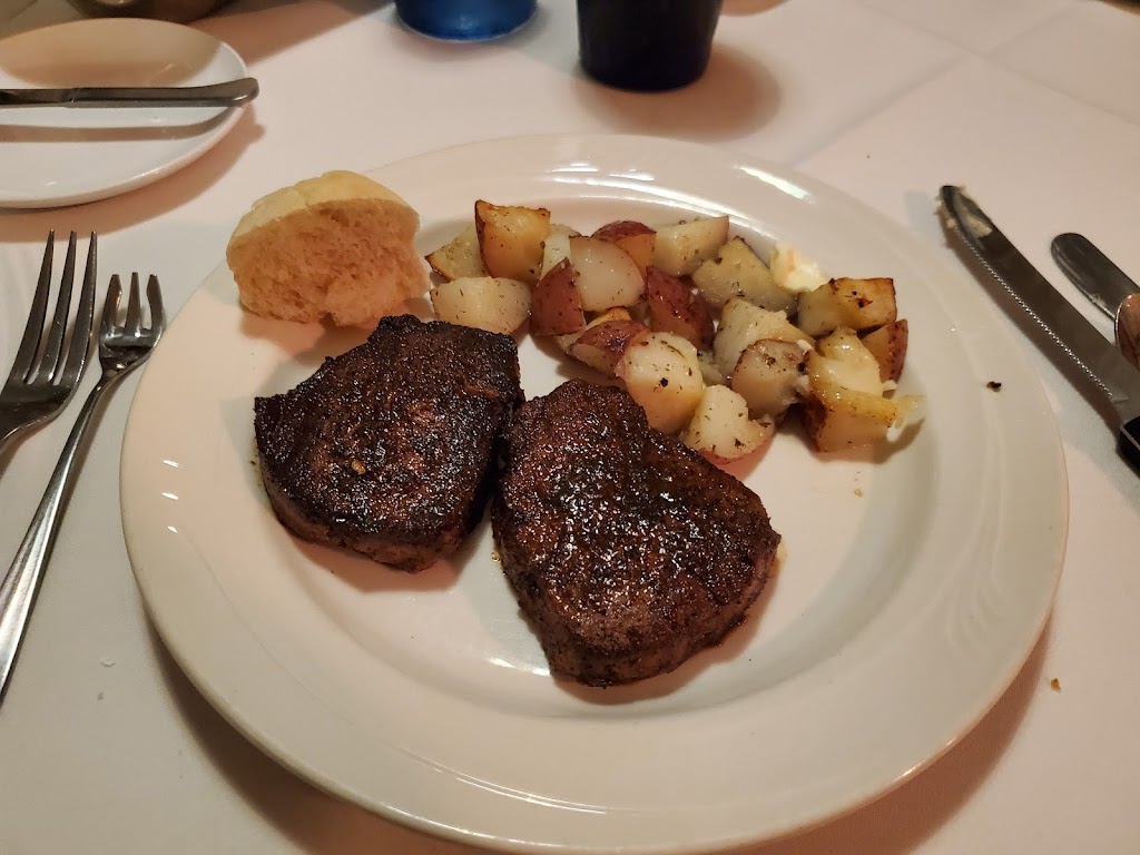 I cannot say enough good things about this incredible restaurant. I wish I could give more than five stars in all categories. Dinner started with an incredible seafood patae followed by the delicious soup and tableside salad cart. The main course was that nightly special of blackened Prime rib which was beautifully cooked and seasoned. While I don't like dessert our group had the Bananas Foster and everyone loved it! The only negative is we eventually had to leave which we eventually did completely stuffed and happy. I cannot wait to visit them again next year.