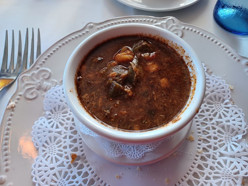 We were 1.5 hours into dinner and all we were served was a bland fish pate and gumbo soup that came with what we ordered for dinner.