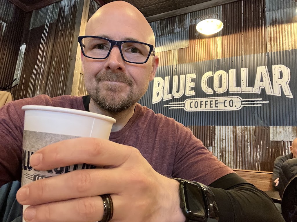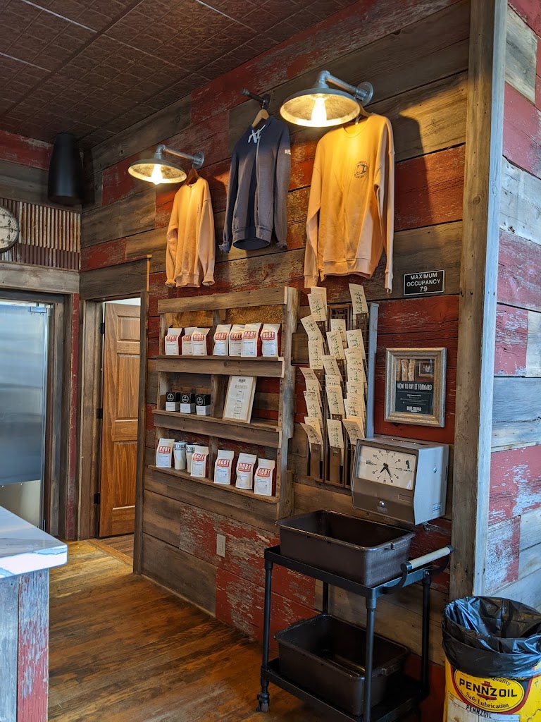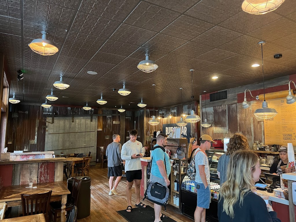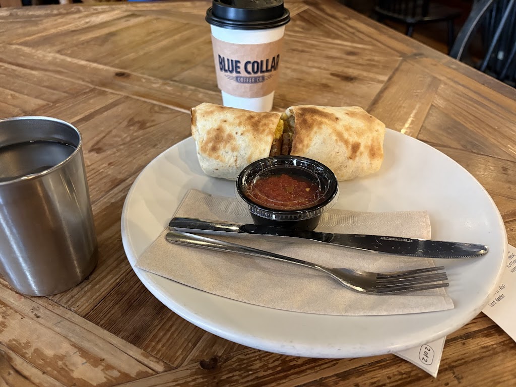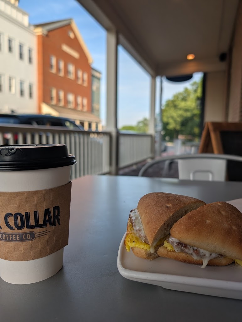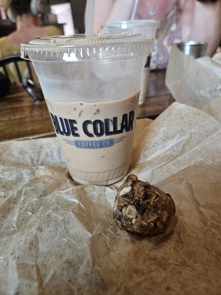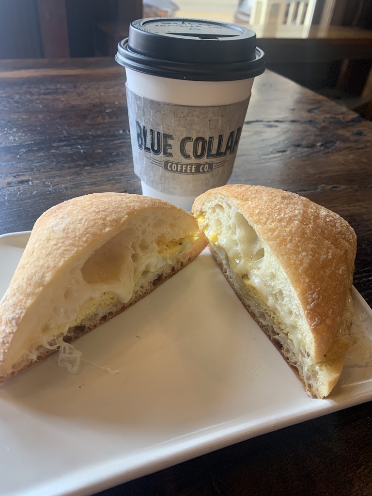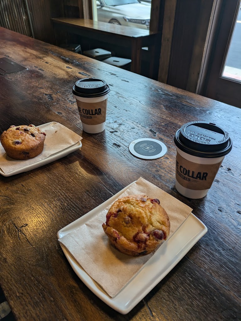 The aesthetic at blue collar coffee is 10/10! If you're like me and care about the vibe (and cleanliness) of a coffee shop, you'll like Blue Collar! It has a charming atmosphere, plenty of seating, a simple menu, clean restrooms, and great free wifi.