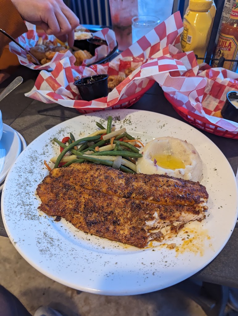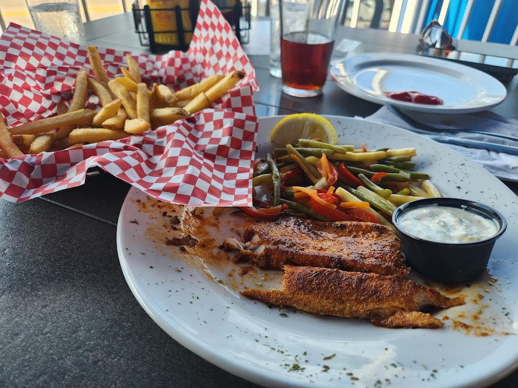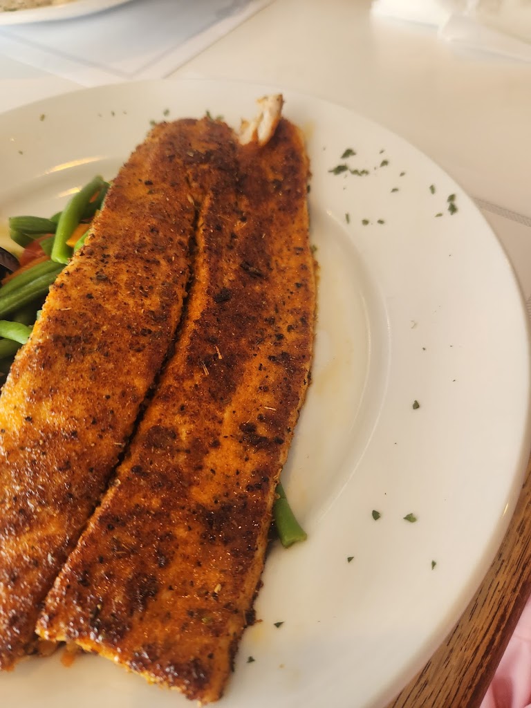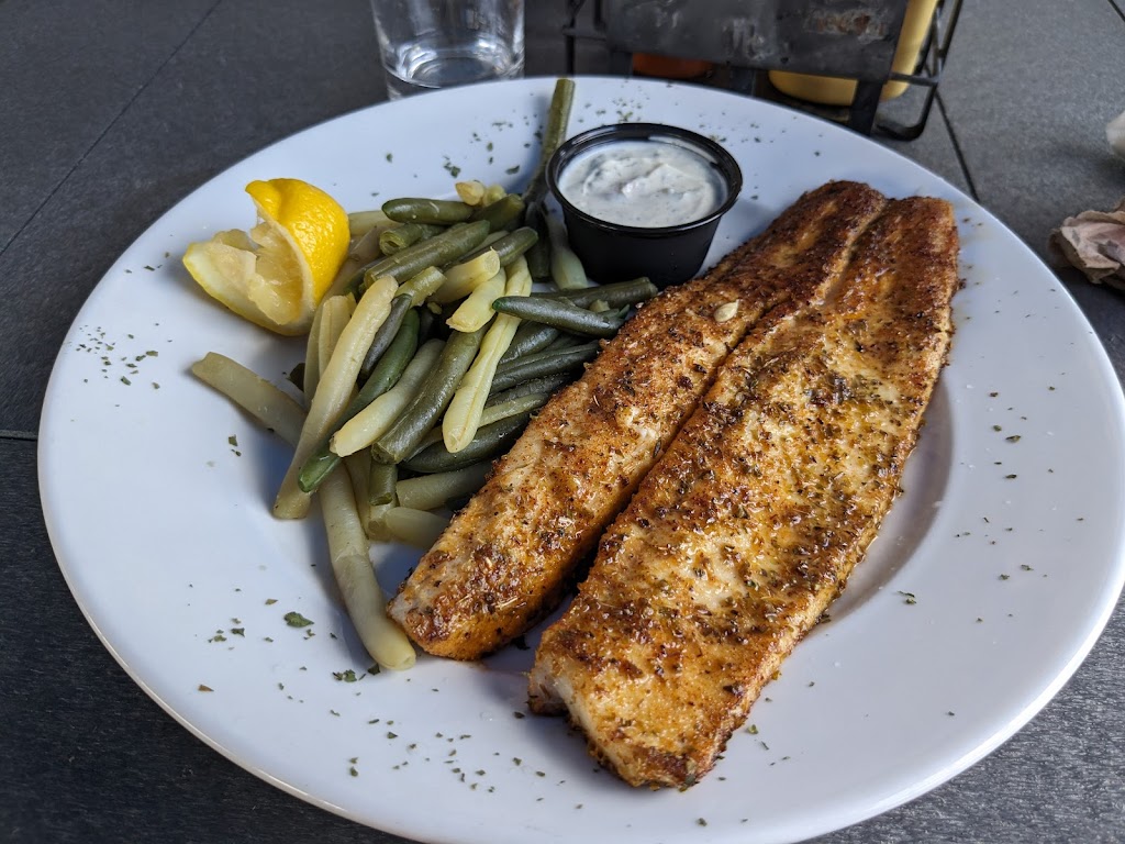 Excellent tasting food here. Great atmosphere and service. Beautiful view of the sunset on the bay. The blackened whitefish was perfectly seasoned, and it was just a little overcooked.