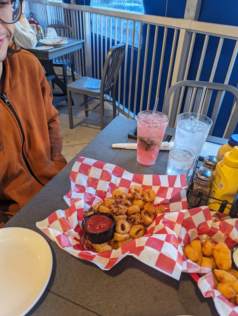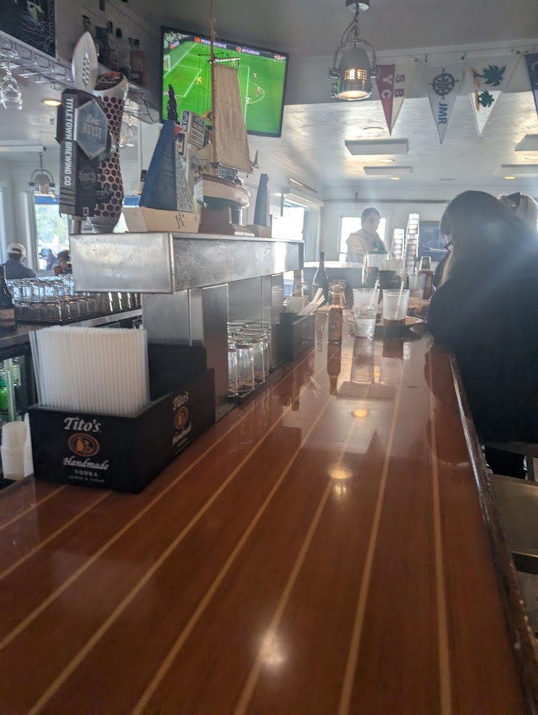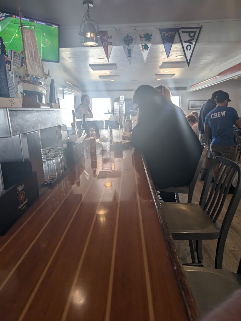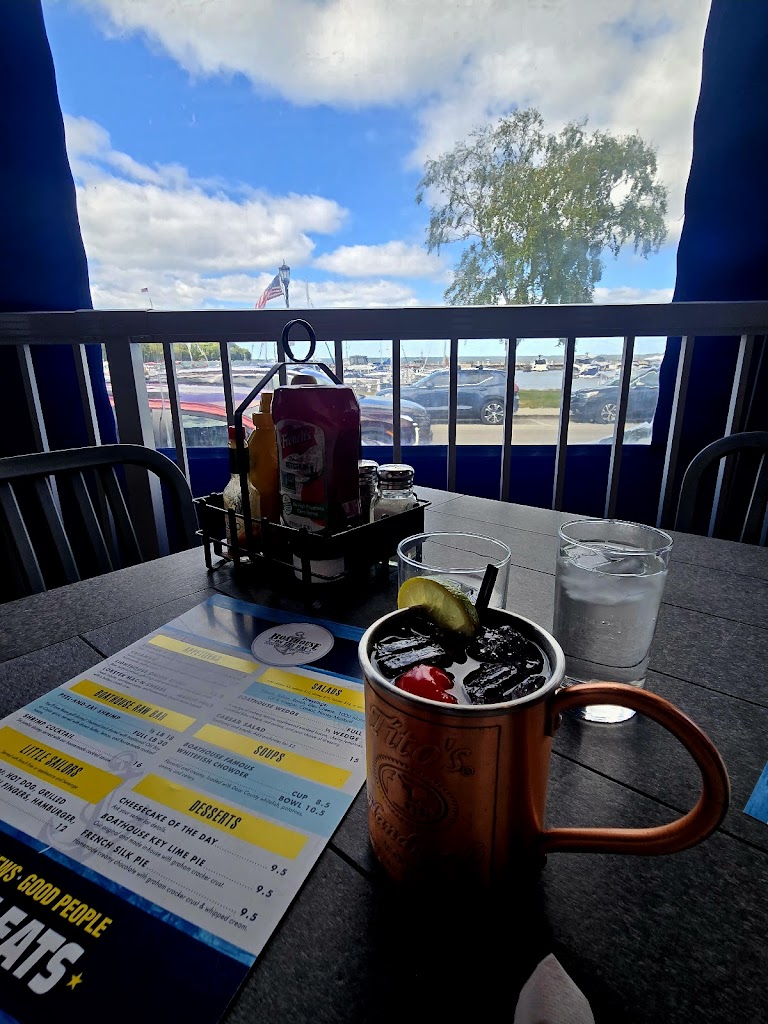 The restaurant is busy and for good reason, the food is amazing, with outdoor seating on the second level both under shelter, under umbrella, or with the umbrellas closed a beautiful view of the bay and harbor as part of the nautical theme of the restaurant adds to the atmosphere. We both enjoyed their famous Po Boy sandwichs with upgraded sides, fried cheese curds that are lightly breaded so the highlight is the curd and not a shell of carbs that other restaurants do. The Mac and Cheese bowel was a large serving with fancy noodles and toasted bread crumbs on top of beautifully melted cheese that isn't from a powder mixture. Both plates had a coleslaw that had a little bite from what tasted like horseradish that was added and not heat from the cabbage. The heat was balanced nicely with the rest of the dish. Dill pickle spears, red onion and tomato slices on the side to add to the Po Boy if you choose and a mayo sauce that could of been a chipotle mix also on the side for the sandwich as well. The drink menu was full of rum, vodka, and tequila mixers. That were priced accordingly and not over strong. We can't wait to return for another date meal.