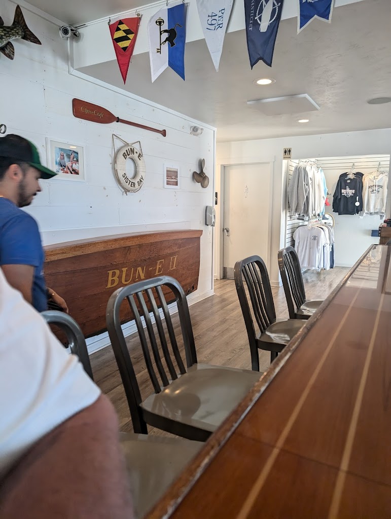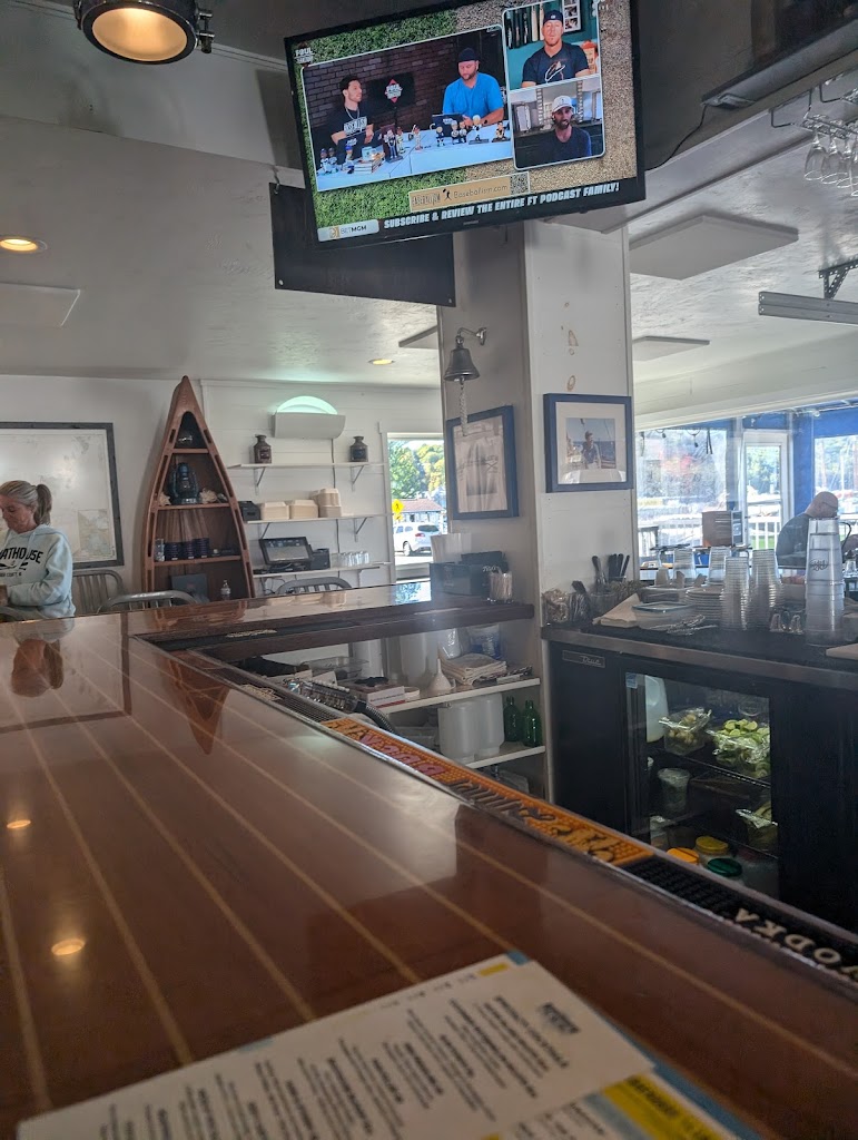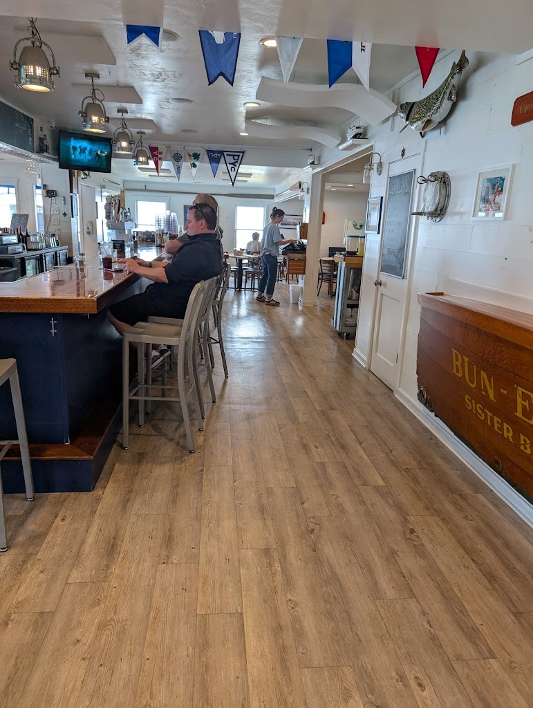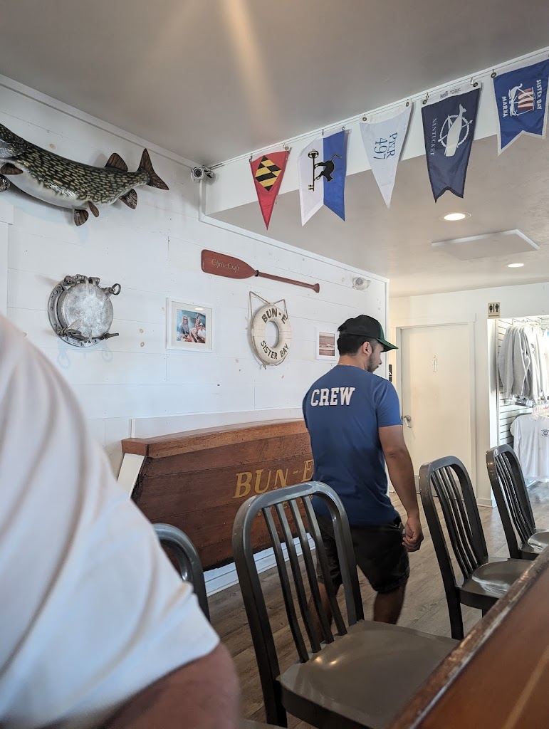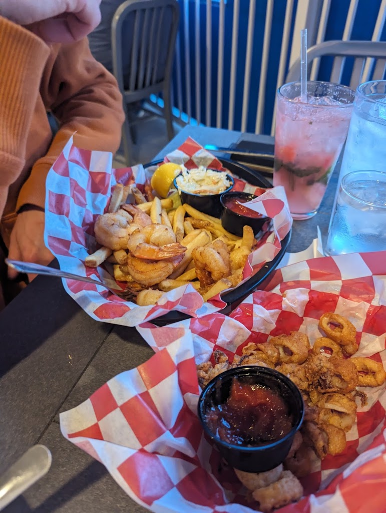 The restaurant is busy and for good reason, the food is amazing, with outdoor seating on the second level both under shelter, under umbrella, or with the umbrellas closed a beautiful view of the bay and harbor as part of the nautical theme of the restaurant adds to the atmosphere. We both enjoyed their famous Po Boy sandwichs with upgraded sides, fried cheese curds that are lightly breaded so the highlight is the curd and not a shell of carbs that other restaurants do. The Mac and Cheese bowel was a large serving with fancy noodles and toasted bread crumbs on top of beautifully melted cheese that isn't from a powder mixture. Both plates had a coleslaw that had a little bite from what tasted like horseradish that was added and not heat from the cabbage. The heat was balanced nicely with the rest of the dish. Dill pickle spears, red onion and tomato slices on the side to add to the Po Boy if you choose and a mayo sauce that could of been a chipotle mix also on the side for the sandwich as well. The drink menu was full of rum, vodka, and tequila mixers. That were priced accordingly and not over strong. We can't wait to return for another date meal.