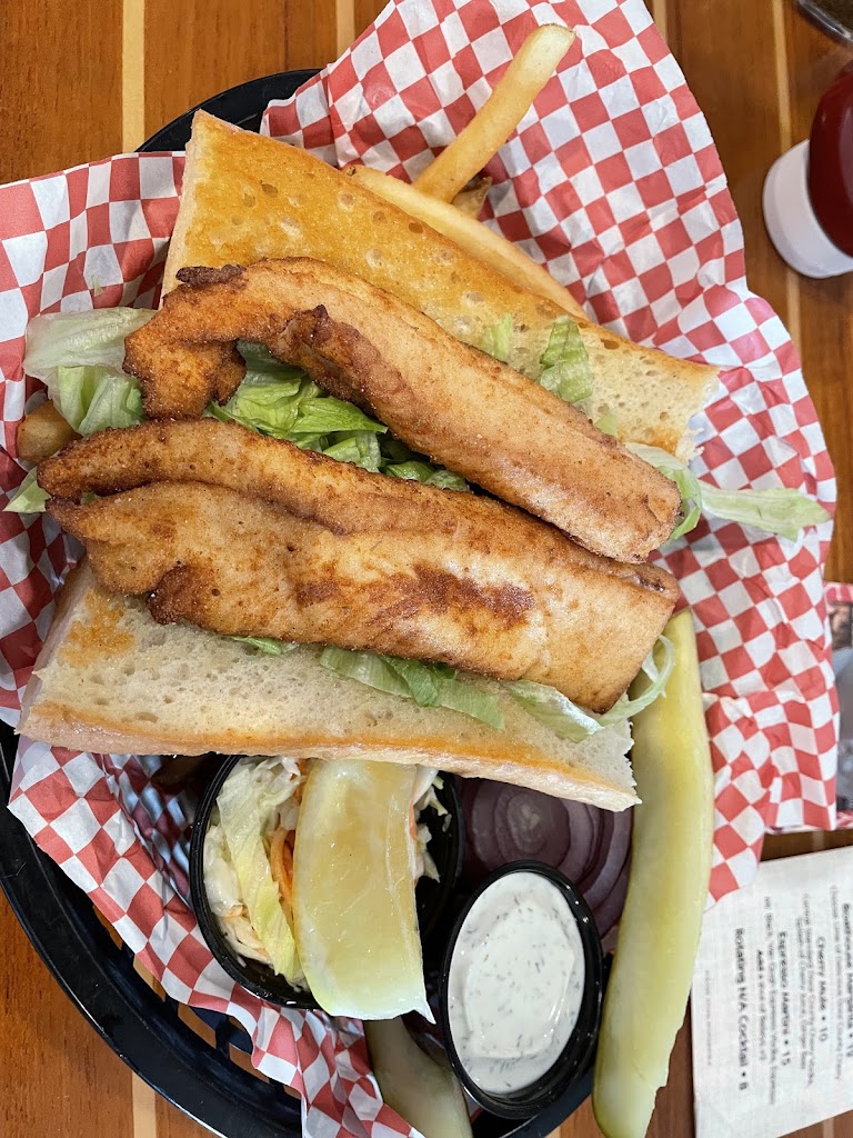 Excellent Shrimp Po'boy better than Florida! Delicious 🍔 Burger! Great, attentive wait staff! Great Views!