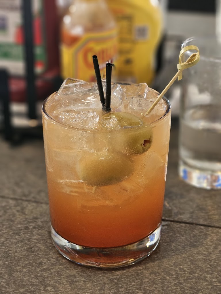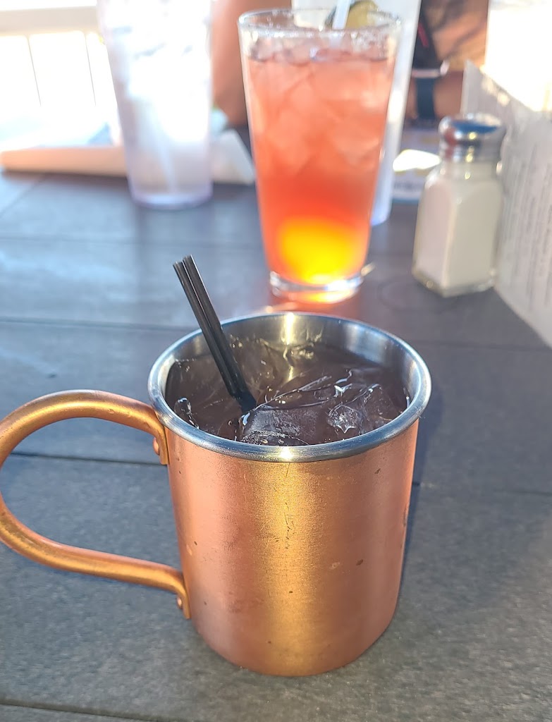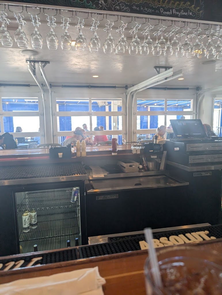 Our server was very nice and promptly got the bloodys to our table. The location has a covered patio, full bar, and indoor restaurant.