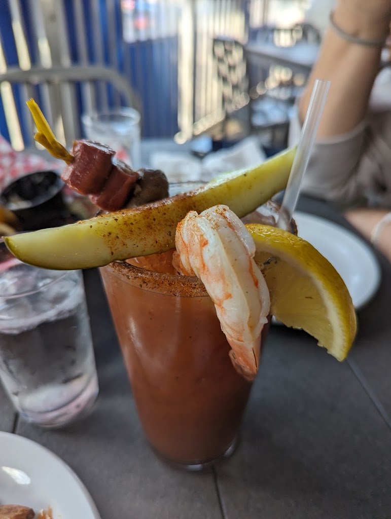 Had the bloody mary. Peel and eat shrimp and the lobster roll. We could not have ask for a better meal...I think the lobster roll was better than the ones we had in Bar Harbor Maine!