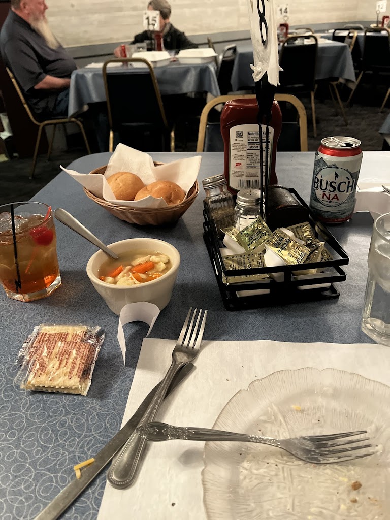 This was my first time there, recently a widow and I have gone out to eat at many establishments alone. Very disappointed in the service as they served a table of seven guests before me. I was at the salad bar when they ordered. The salad bar was great. My waitress finally served my dinner, the prime rib was dry, mostly because it was medium well not medium rare as I ordered. I couldn’t send it back because I never saw my waitress until she brought my bill. Everyone around me was offered complimentary ice cream, evidently I was not. I’m not sure if I would give them another chance, I definitely prefer Rene’s Super club by far. The bartender was awesome. Please talk with you staff, as I usually tip over 30% for good service. The service was not even par.