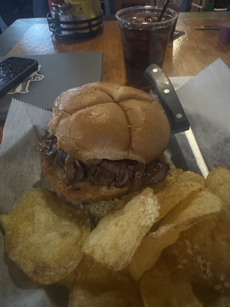 Reuben meat was cold in the middle, likely because it was cut into cubes before being microwaved. If it would have been cut a little thinner then it would probably have reheated better for serving. Au jus was flavorless, seemed like it was taken from a larger stock that was not stirred before the portion was removed to be microwaved for serving. Bread from sandwiches had black sticky residue from the grill. It was quite busy so it's not super surprising, but being more diligent about managing the grill top will help prevent this going forward. The parking lot is unfortunate, angled parking with nowhere to turn around. The lawn behind the parking lot looked muddy and torn up, likely because it was the only way for people to turn around to leave.