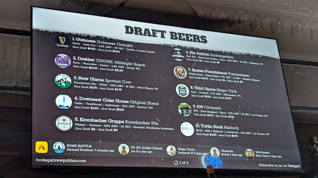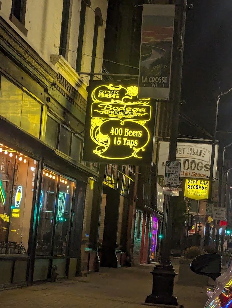 Located in La Crosse, Wisconsin. Bodega Brew Pub is a quirky watering whole dispensing great beer, great food, trivia, game night and much more. Up to 400 different bottled beers and 20 taps, you will never get bored in this cozy relaxed atmosphere.